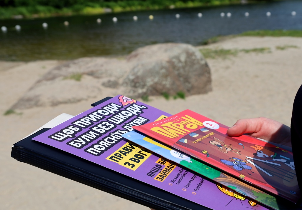 Окрему увагу приділили наймолодшим відпочивальникам. Працівниця ДСНС у формі дружньої бесіди нагадала малечі основні правила безпечної поведінки на воді. Діти дізналися, чому не можна купатися без дорослих, як діяти в небезпечній ситуації та чому слід бути уважними навіть на знайомому пляжі. Малечі також роздали яскраві інформаційні матеріали з Псом Патроном, у яких у формі гри та ілюстрацій пояснюються основні правила поведінки біля води. Такий підхід допомагає не лише зацікавити дітей, а й краще закріпити отримані знання