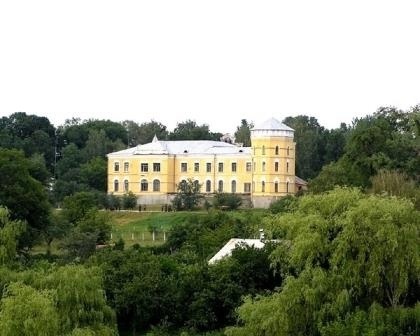 Будинок, споруджений в змішаних формах ренесансу, бароко, класицизму, західним фасадом виходить на правий берег р. Случ.