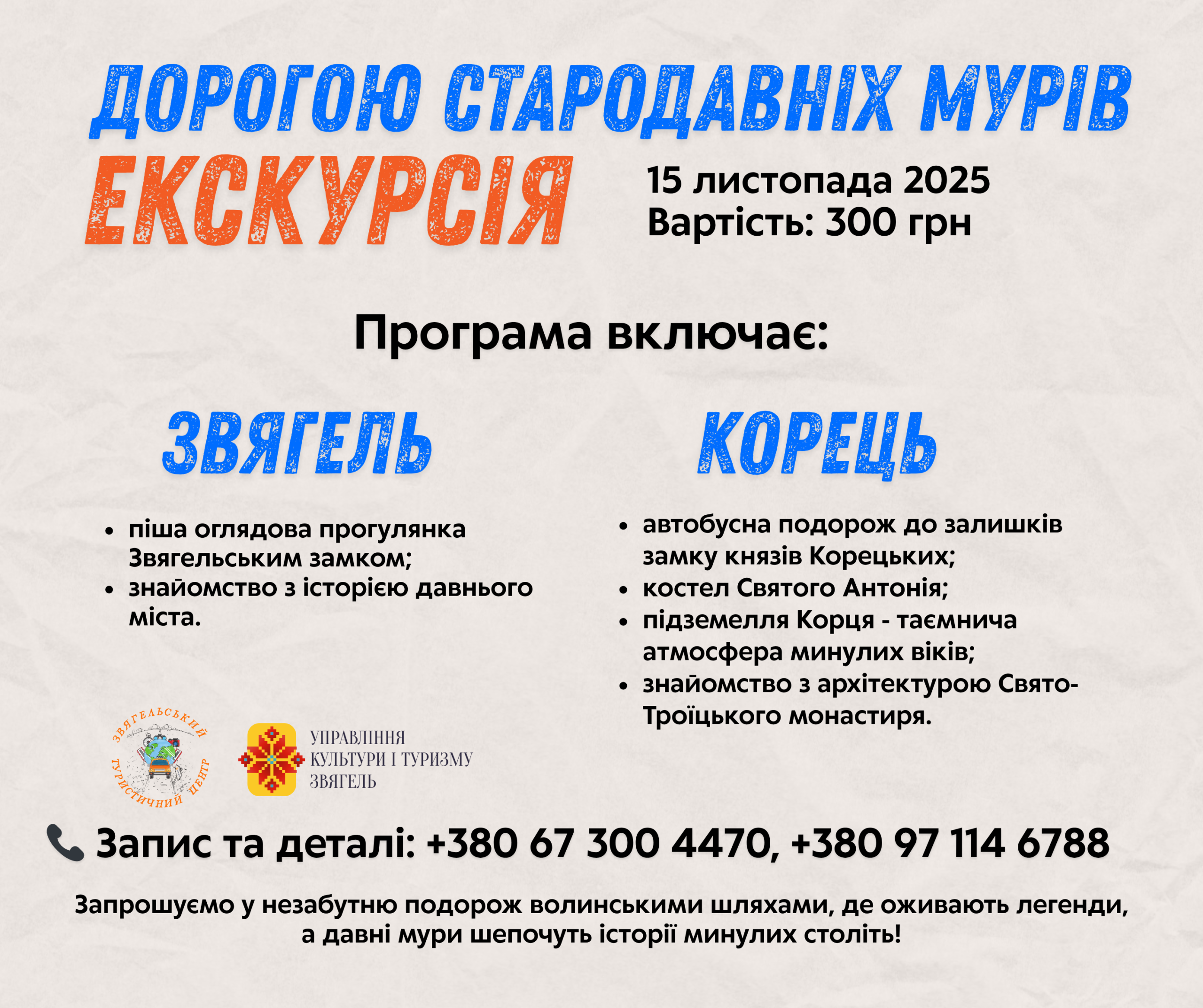 Звягельський туристичний центр запрошує у незабутню подорож волинськими шляхами, де оживають легенди, а давні мури шепочуть історії минулих століть!