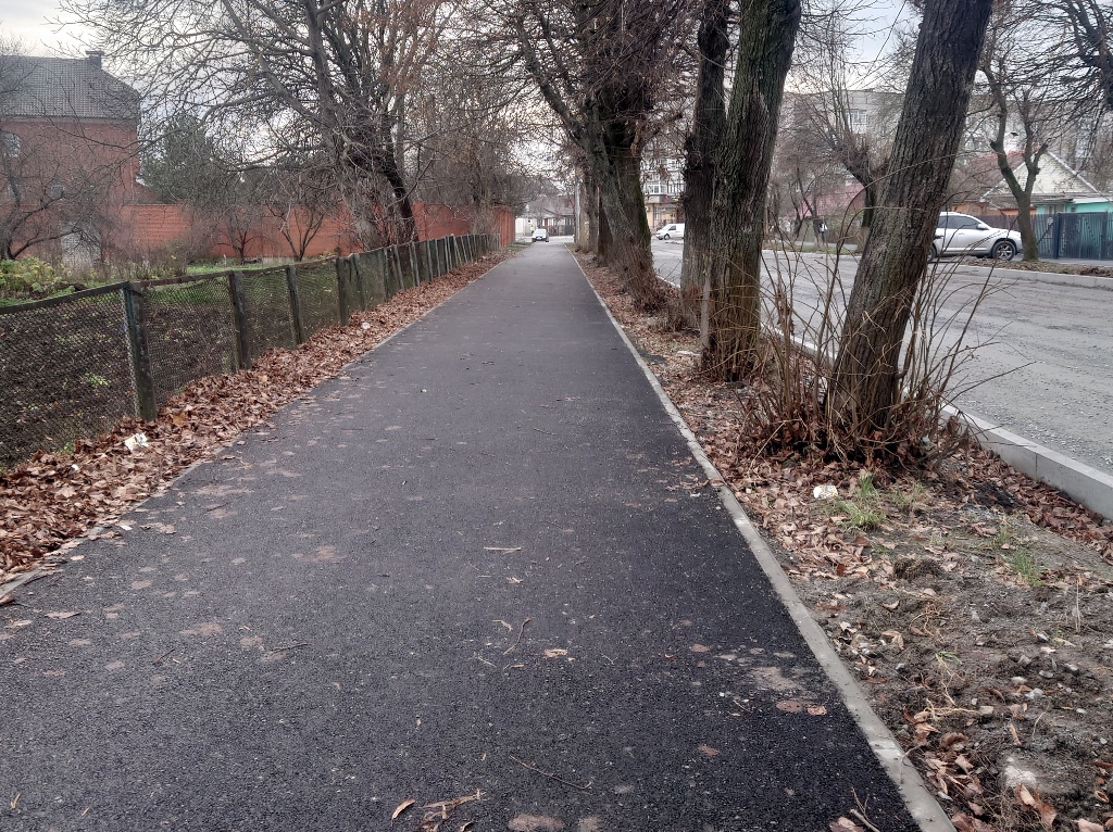 Згідно затверджених планів та відповідно до проектної документації на будівництво об’єктів, у 2025 році будуть виконані роботи з улаштування тротуарів з обох сторін даного відрізку вулиці, змонтовані зливоприймачі, бортові камені та поребрики, тактильна плитка.