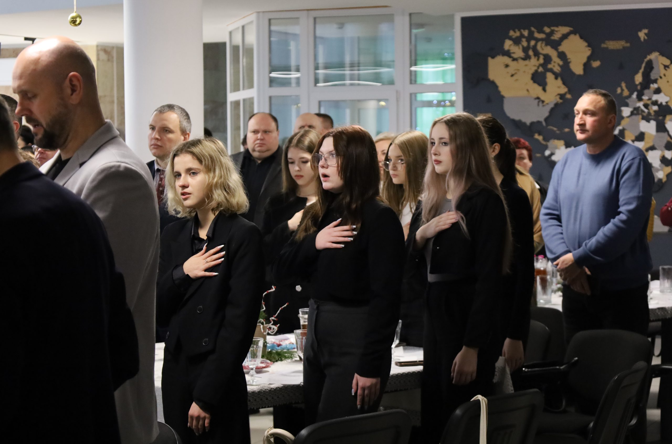 Розпочали Молитовний Сніданок Державним Гімном України та вшануванням хвилиною мовчання пам’ять полеглих українських захисників – Героїв.