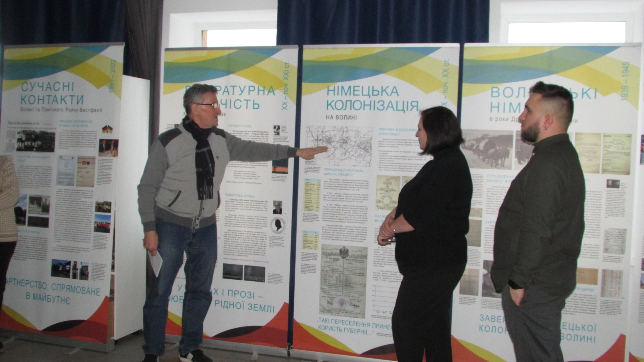 15-го січня 2026-го року в приміщенні Звягельського туристичного центру відкрилася виставка “Волинь і Німеччина: мости з минулого в сучасне”, присвячена українсько-німецьким взаєминам — від подій ХІХ століття до реалій сьогодення. Про трагічну історію Волинських німців розповідав голова “Товариства німців Житомирщини – Відергебурт” Володимир Піньковський.