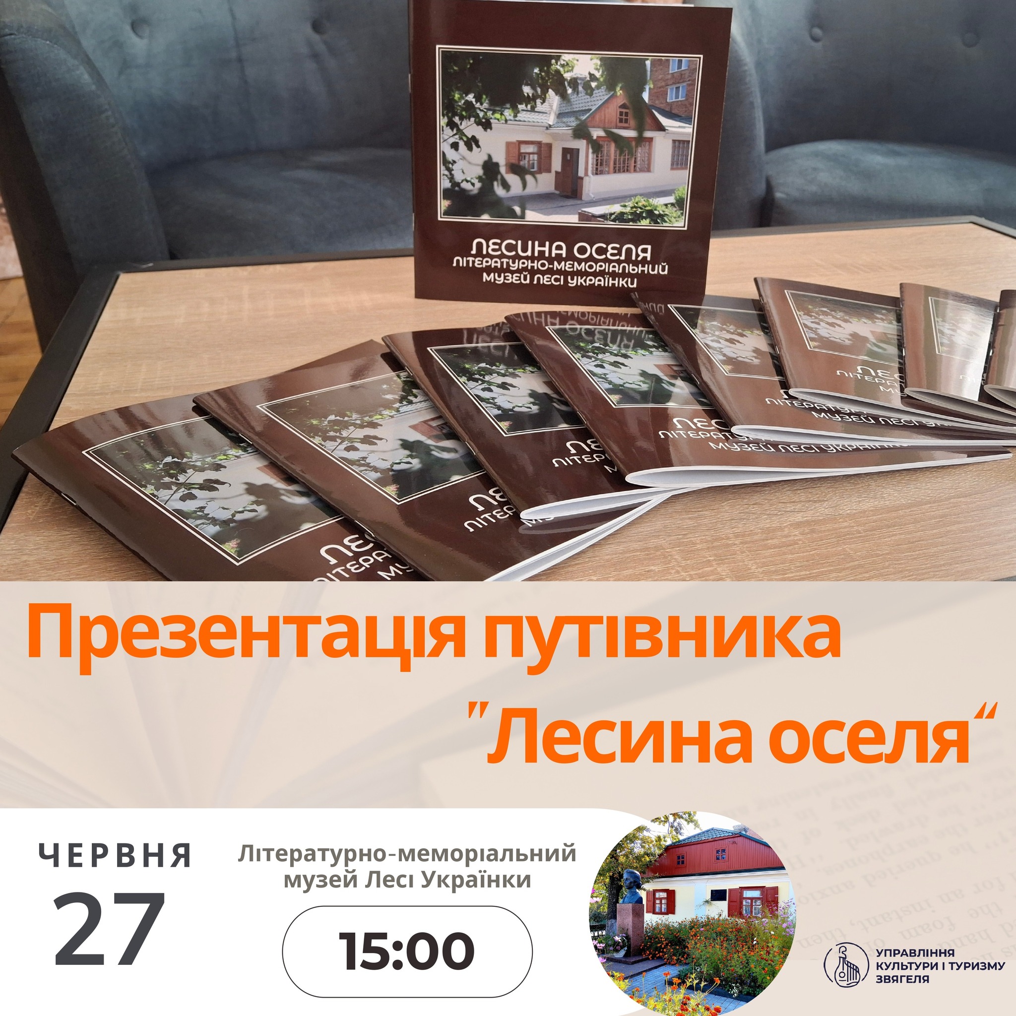 У п’ятницю, 27 червня, у Літературно-меморіальному музеї Лесі Українки у Звягелі відбудеться презентація путівника “Лесина оселя. Місце натхнення”, який вийшов друком у 2025 році за сприяння Управління культури і туризму Звягельської міської ради.
