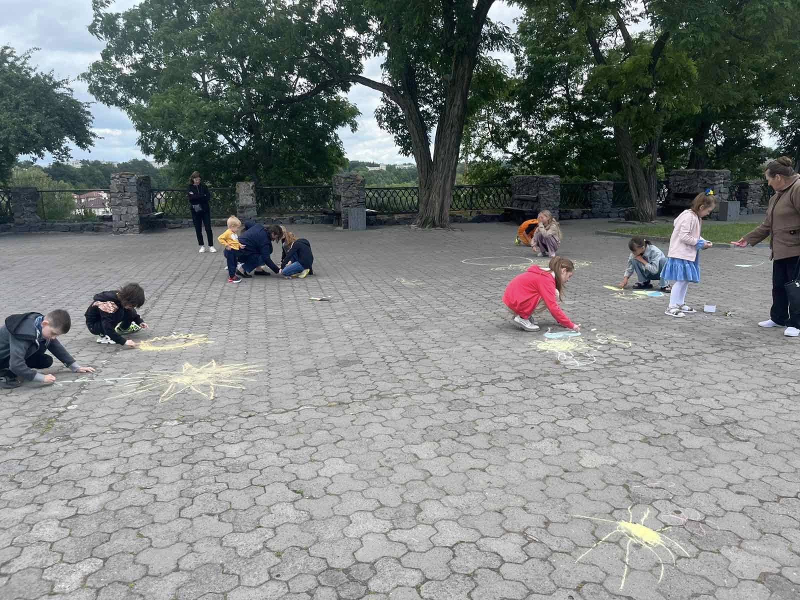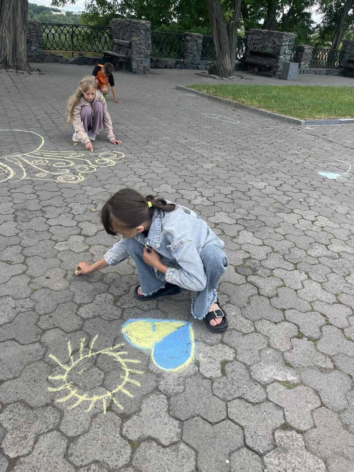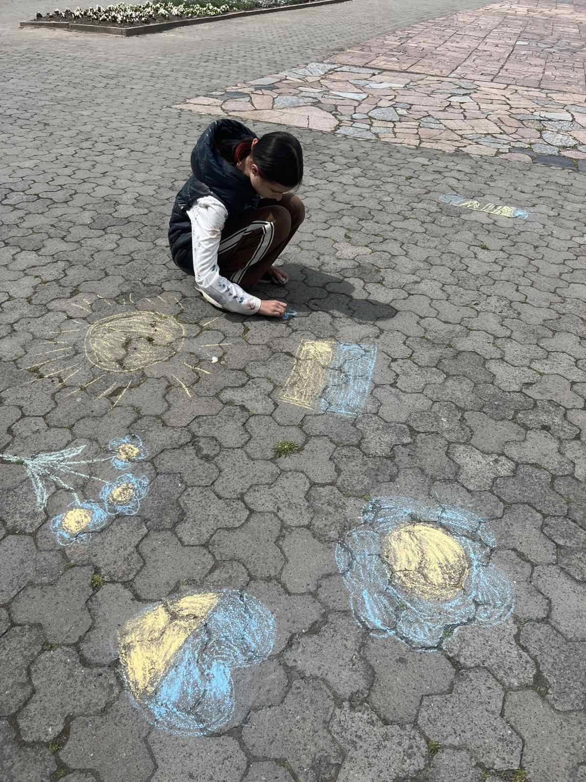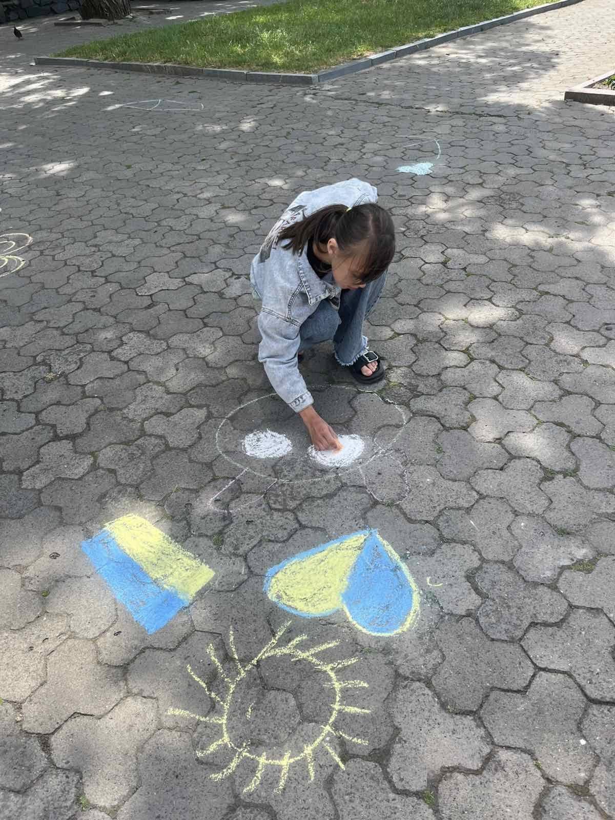 Діти висловлювали своє бачення та розуміння теми, їхня енергія і запал просто вирували. Маленькі художники залюбки малювали. На очах повставали малюнки про нашу державу, в зміст яких діти вклали свій погляд на сьогодення і побажання миру, єдності та добра Україні: сонце, синьо-жовте серце, прапор… Навіть найменші учасники також старалися крейдою залишити на асфальті свій шедевр.
