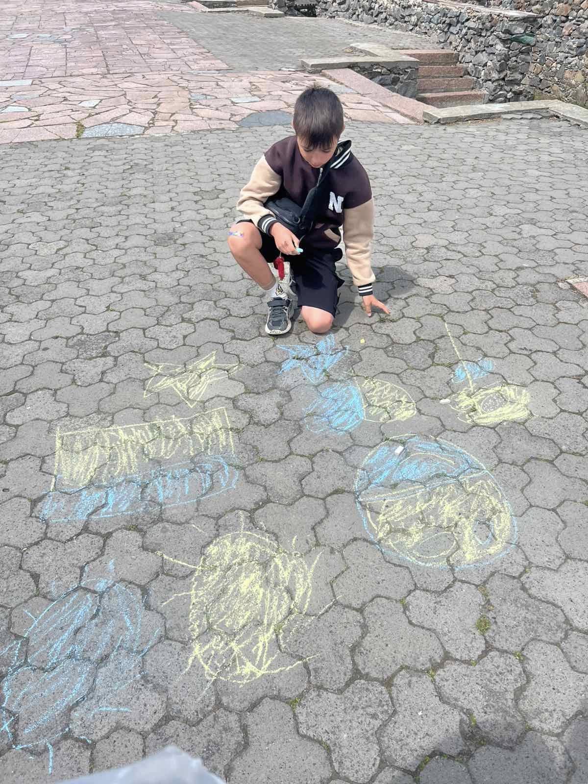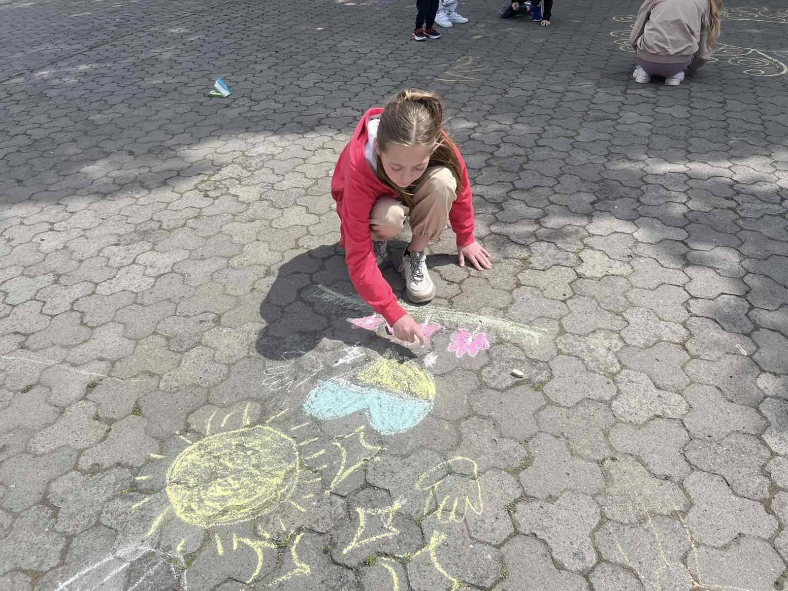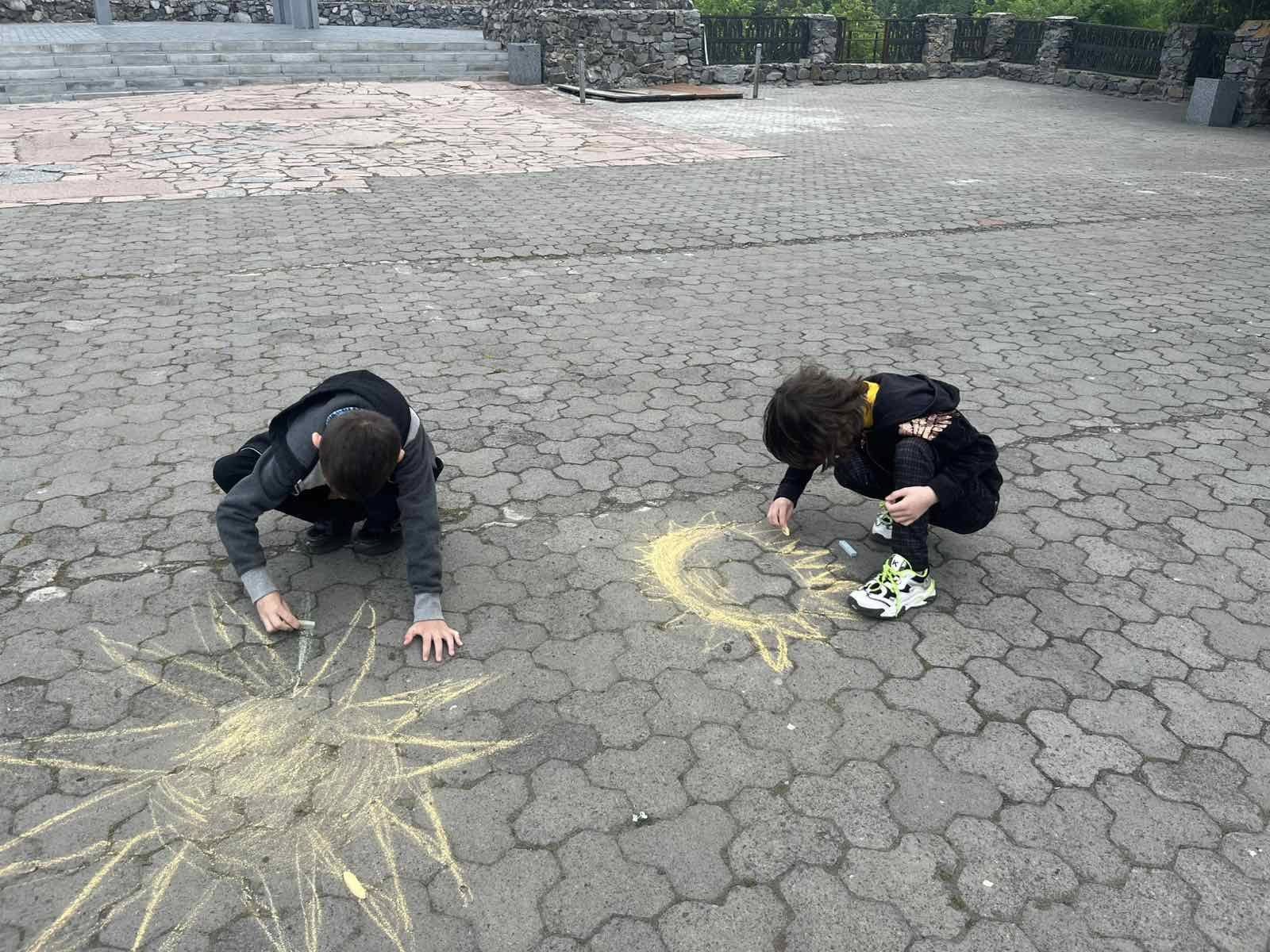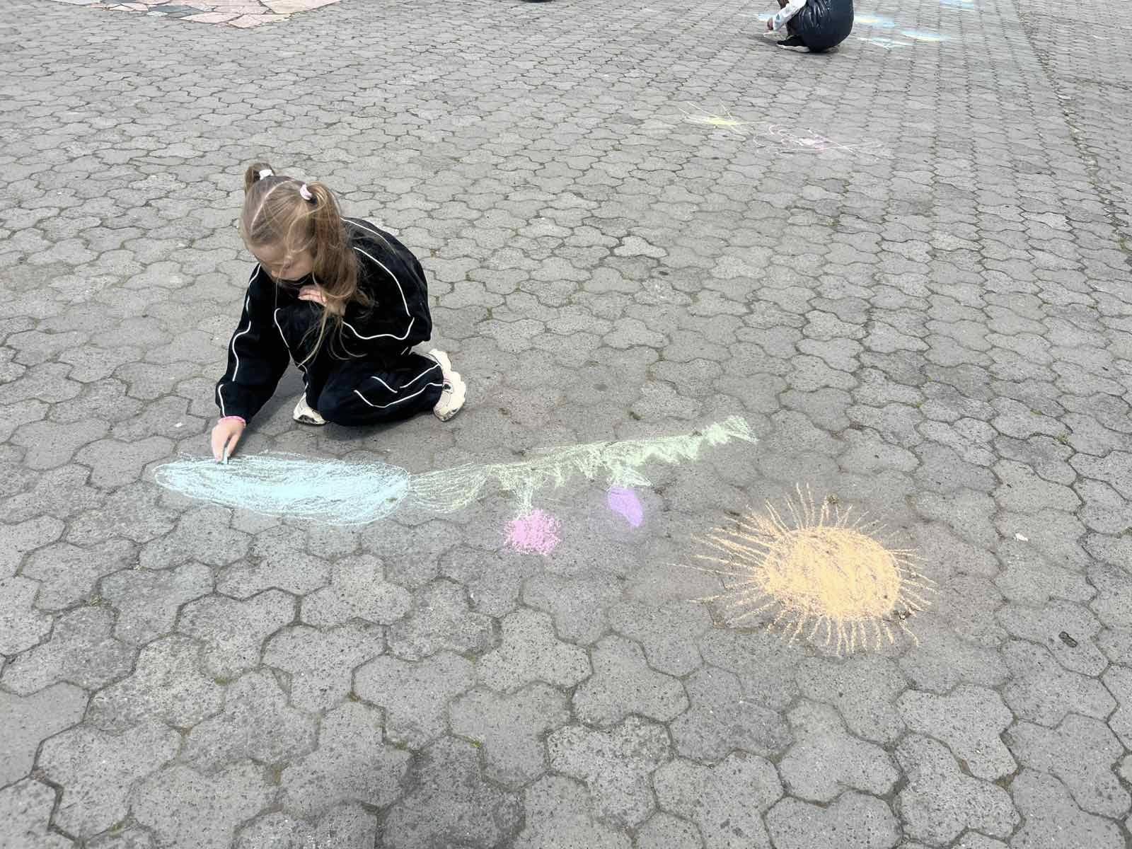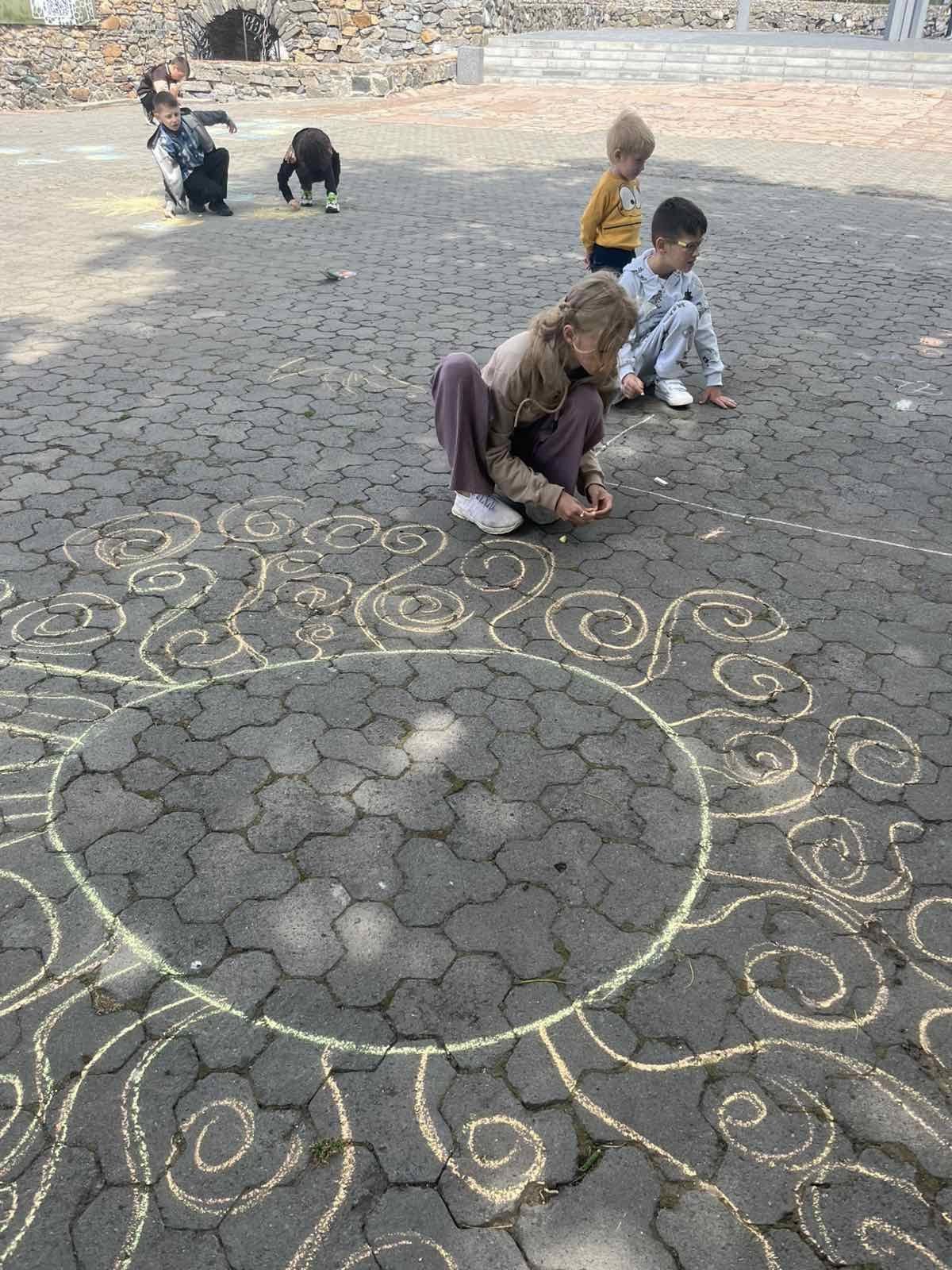 Діти висловлювали своє бачення та розуміння теми, їхня енергія і запал просто вирували. Маленькі художники залюбки малювали. На очах повставали малюнки про нашу державу, в зміст яких діти вклали свій погляд на сьогодення і побажання миру, єдності та добра Україні: сонце, синьо-жовте серце, прапор… Навіть найменші учасники також старалися крейдою залишити на асфальті свій шедевр.
