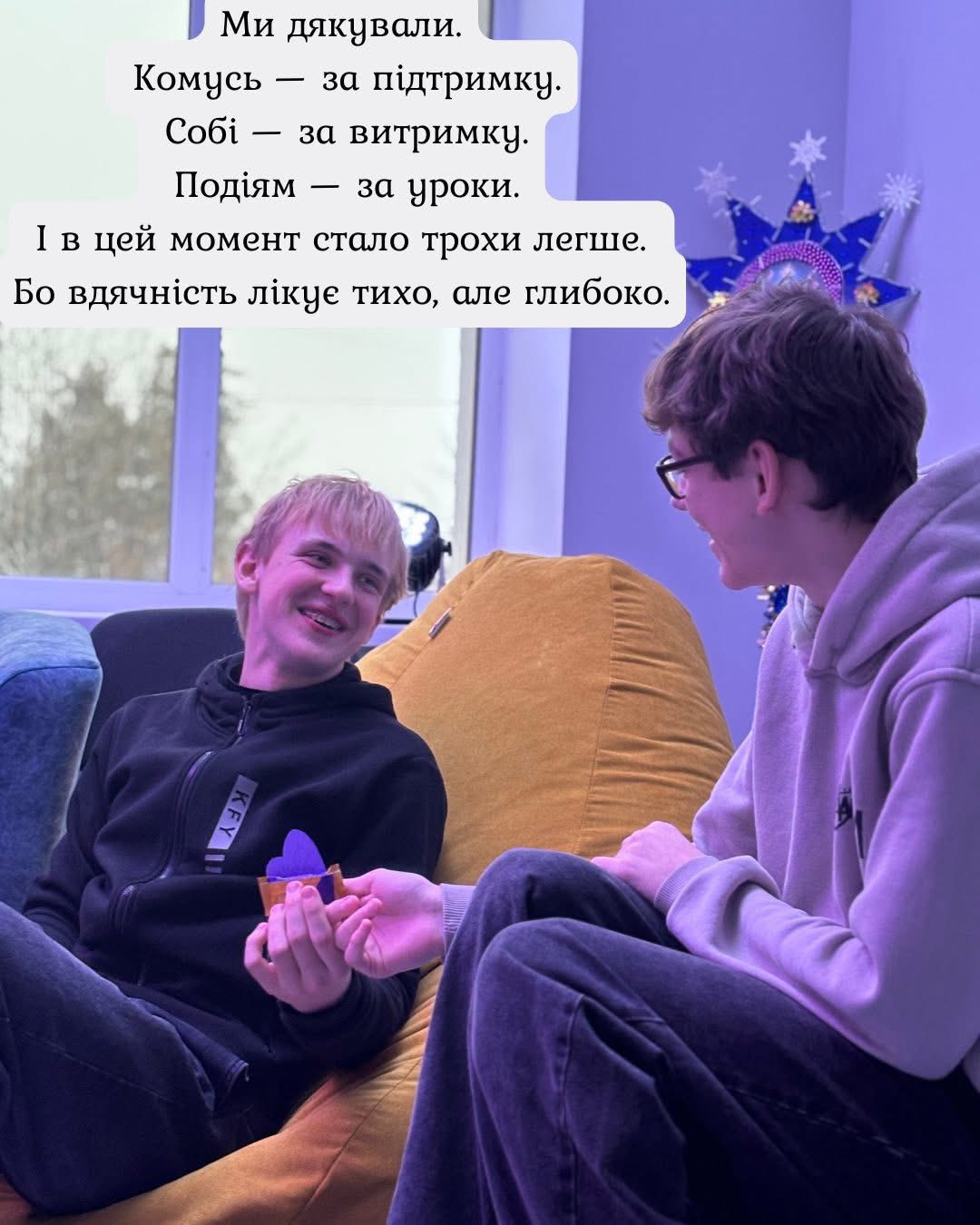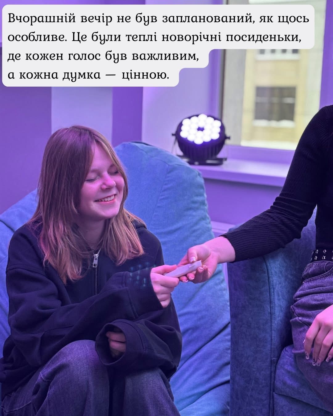 Окрему увагу було приділено темам вдячності, взаємної підтримки та мрій на майбутнє. Учасники ділилися теплими побажаннями, слухали музику, яка асоціюється з важливими моментами року, та брали участь у рефлексійних вправах, спрямованих на формування позитивного бачення 2026 року.
