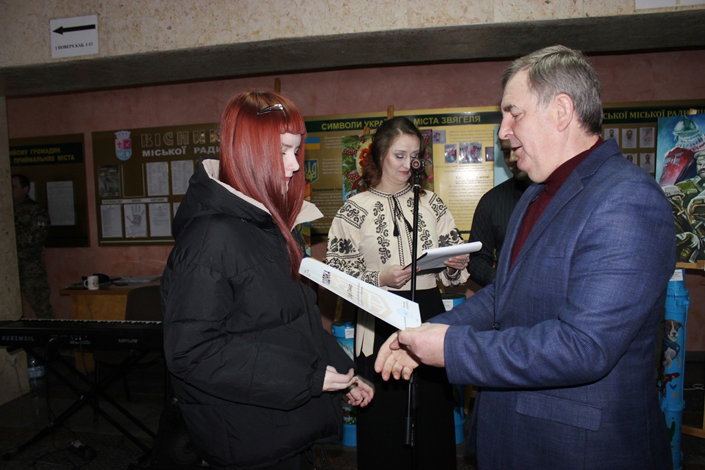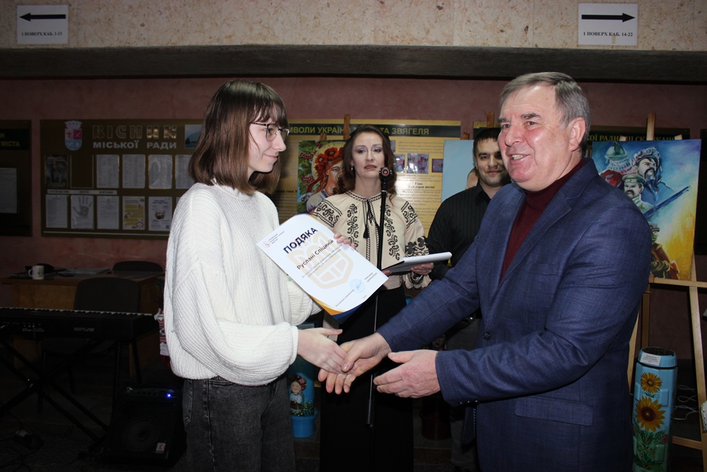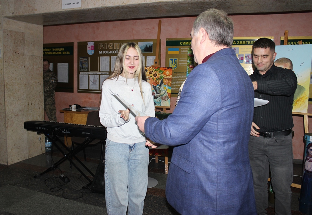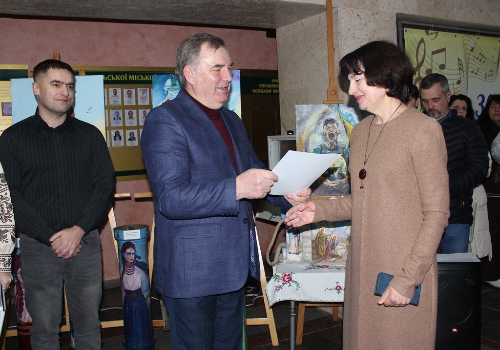 Окремо міський голова відзначив творчу діяльність викладача пана Фурмана, підкресливши його значний внесок у культурне життя міста. За словами Миколи Боровця, роботи митця давно стали окрасою мистецького простору громади, а його творчість має особливу силу — об’єднує, надихає та слугує духовним оберегом для наших захисників і всієї звягельської громади.