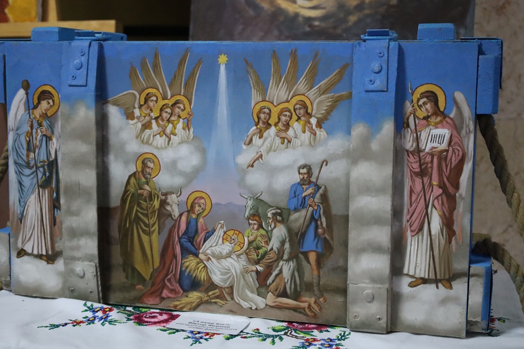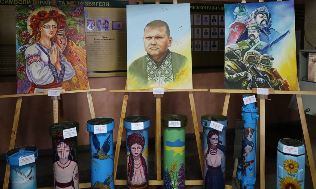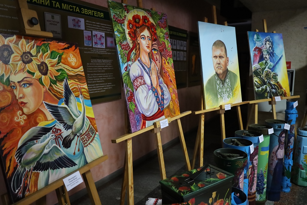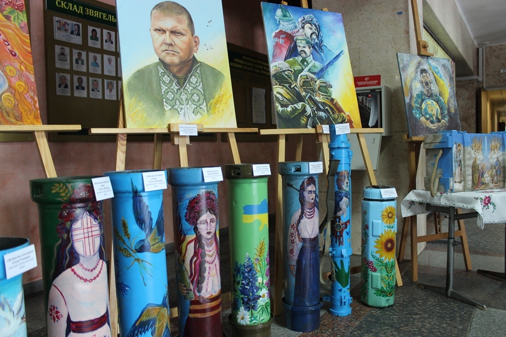 Особливе місце в експозиції займають інсталяції з елементів військового спорядження, перетворених на артоб’єкти. Гільзи від великокалібрових снарядів, тубуси з-під «Джавелінів», ящики для патронів, корпуси мінометів у руках митців стали символами миру й відродження. Через фарби та пензель вони розповідають про природу, глибину української історії, традиції, щасливе дитинство та боротьбу за свободу і незалежність.