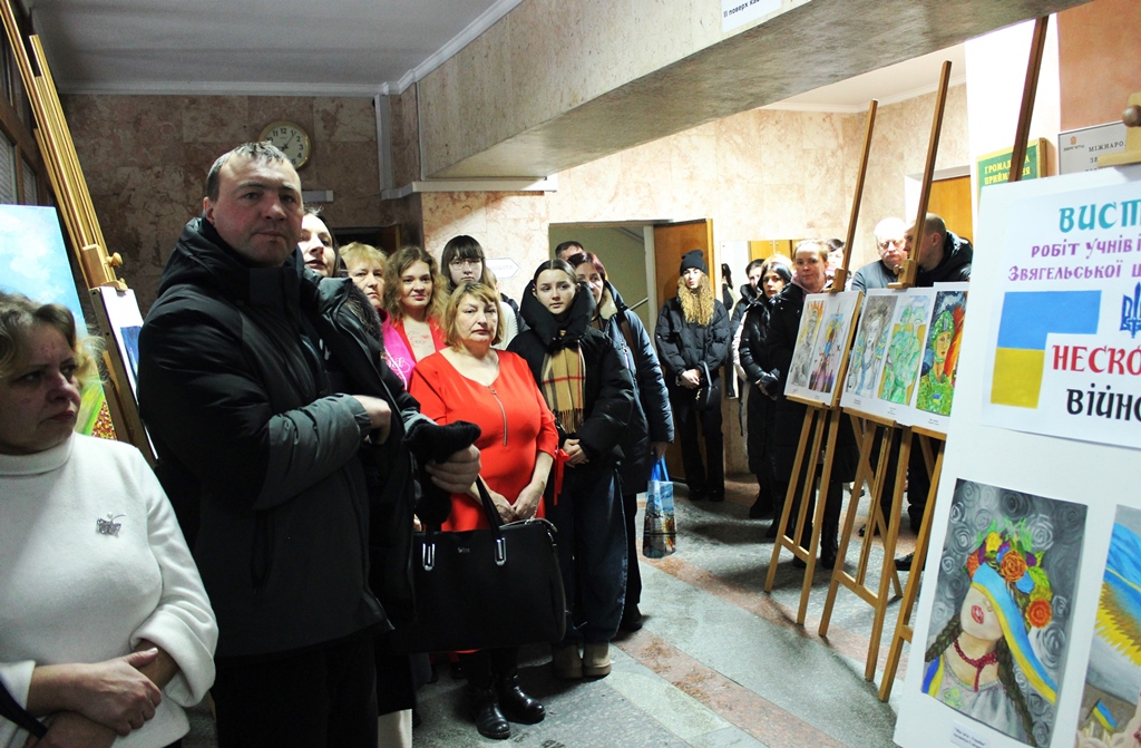 Сьогодні, 12 лютого 2026 року,  у фойє Будинку рад відбулося урочисте відкриття виставки «Нескорені війною» — другого циклу творчих робіт учнів та викладачів образотворчого відділення Звягельської школи мистецтв.