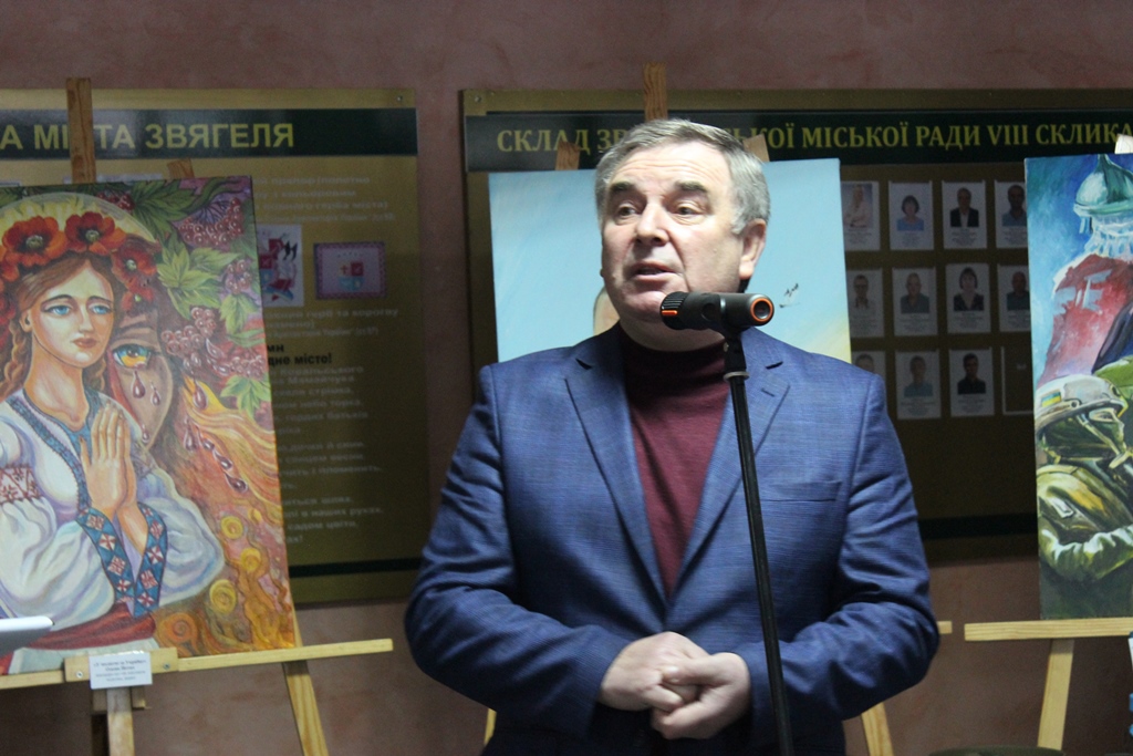 У вітальному слові міський голова Микола Боровець висловив щиру вдячність усім учням і викладачам Звягельської школи мистецтв за талант, небайдужість і глибоке патріотичне наповнення робіт. Очільник громади наголосив, що саме через мистецтво молоде покоління утверджує національну свідомість, зберігає історичну пам’ять і доносить світові правду про незламність українського народу. Він подякував педагогам за високий професіоналізм, мудре наставництво та вагомий внесок у виховання свідомої, творчої й духовно багатої молоді.