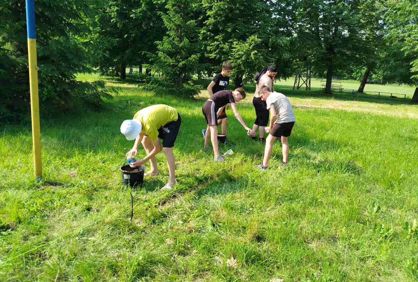 За ініціативі директора ДЮКФП Вадима Омельчука та керівника гуртка з пауерліфтингу Дмитра Коростельова, вихованці відділення пауерліфтингу провели активні роботи з облаштування вуличного спортивного майданчика для тренувань та гри у волейбол.