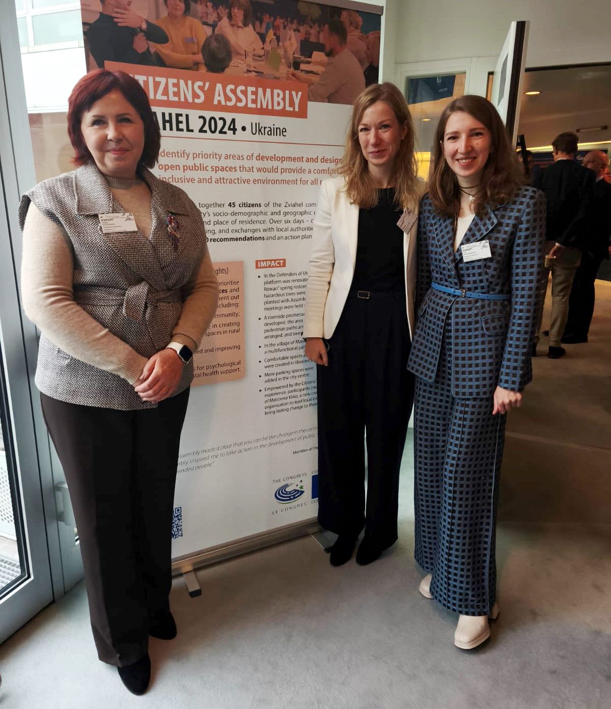 26 листопада 2025 року секретар Звягельської міської ради Оксана Гвозденко взяла участь у європейській конференції “Resilient Europe through deliberative democracy: Cities and regions in action” («Стійка Європа задля деліберативної демократії: міста та регіони в дії»), яка відбулася у Страсбурзі. Захід організував Конгрес місцевих і регіональних влад Ради Європи, зібравши 130 представників органів влади різних рівнів, науковців і представників громадянського суспільства з 22 держав-членів Ради Європи.