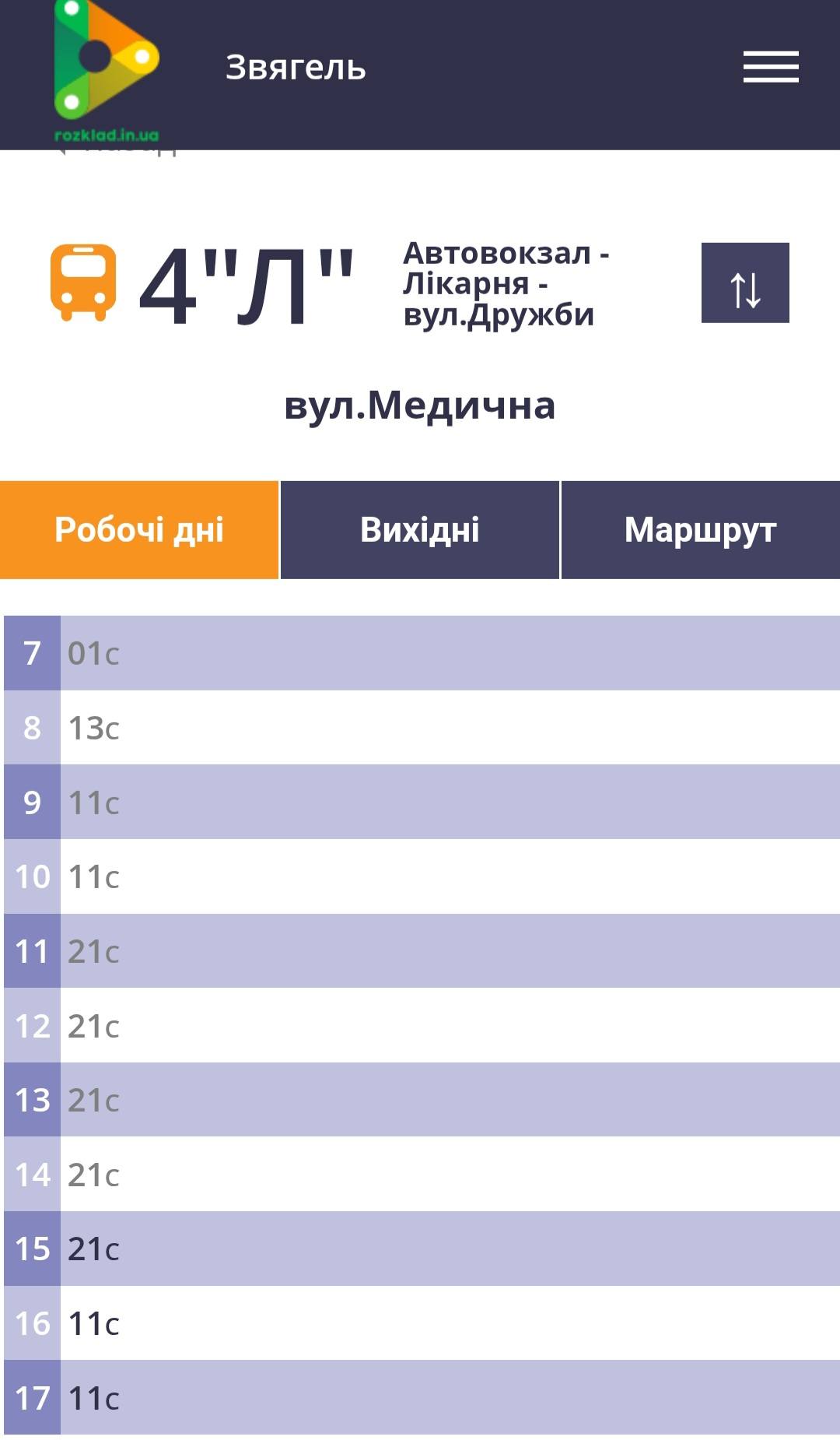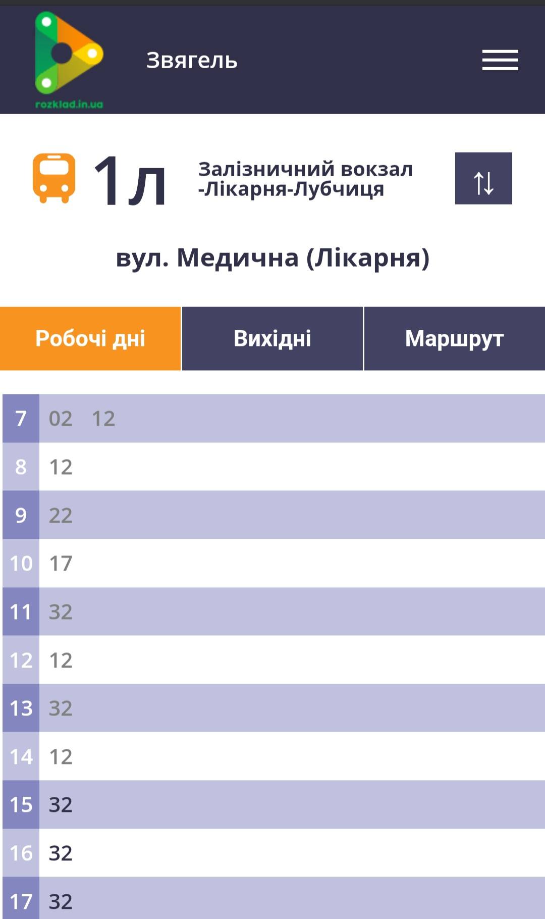 Розклад із початкових зупинок та з вул. Медичної наведено на фото.