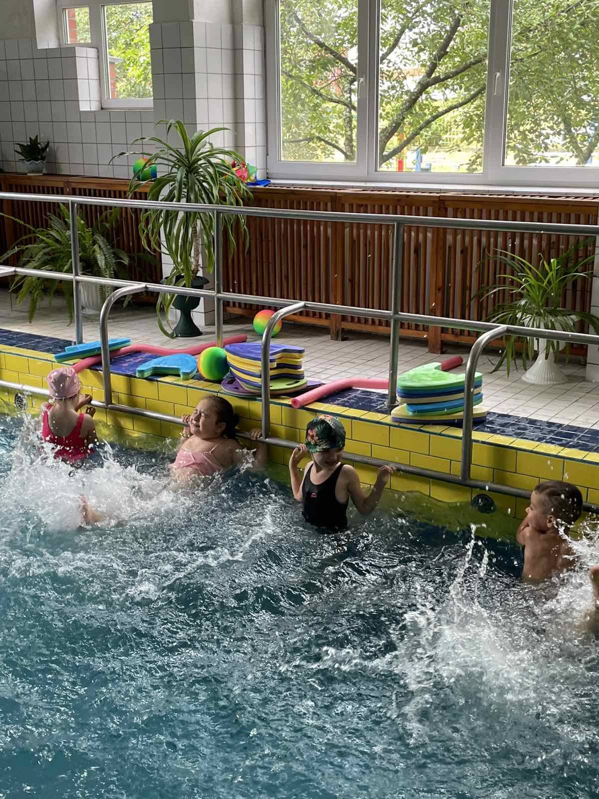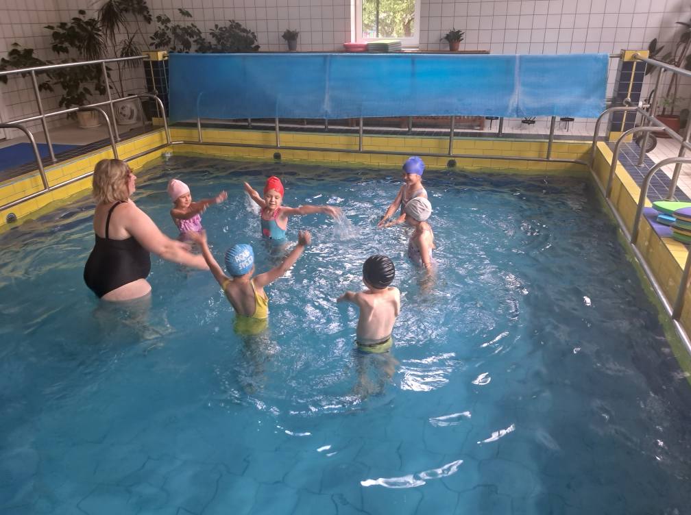 Заняття з плавання надзвичайно корисні для зростаючого організму: під час них активно працюють усі групи м’язів, розвивається координація, витривалість, зміцнюється імунна система. У поєднанні з водними оздоровчими процедурами це також позитивно впливає на ментальне здоров’я дошкільнят — діти відчувають радість, розслаблення та емоційне піднесення.