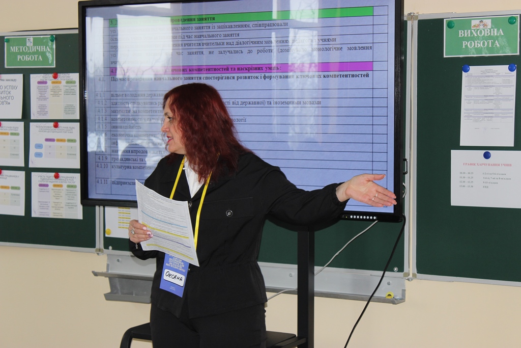 Під час практичної частини семінару учасники спробували себе у ролі експертів й оцінювали педагогічну діяльність вчителів, спостерігаючи за відеозаписами уроків. Для оцінювання педагогічної діяльності вчителів запропоновано форму спостереження, яка використовується під час інституційного аудиту.