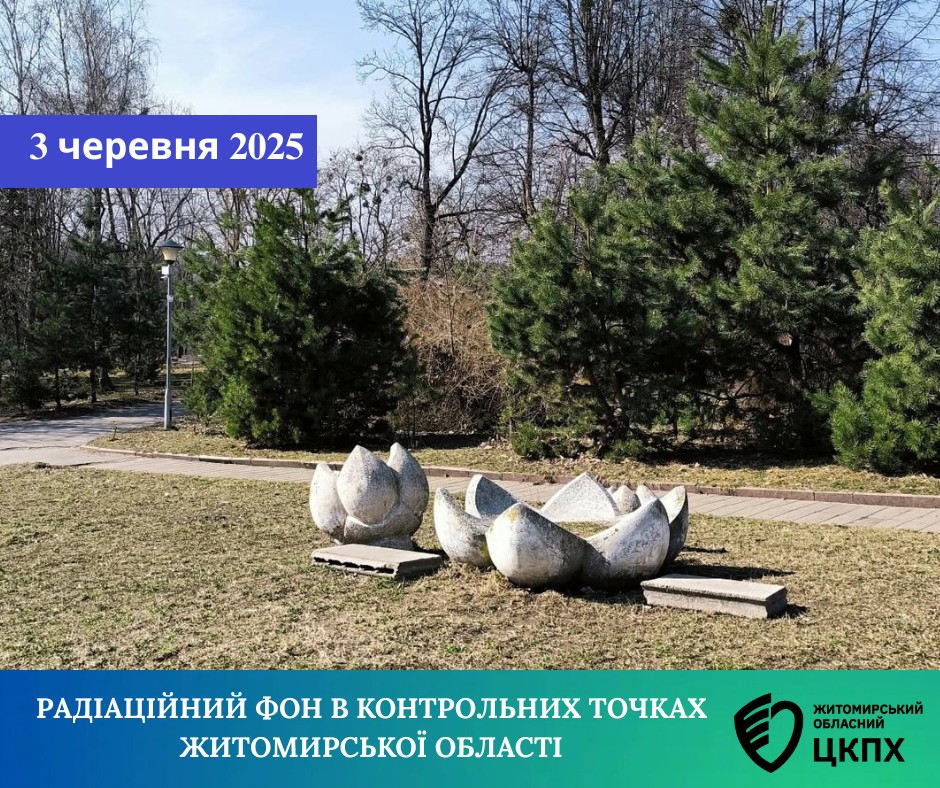 ДУ «Житомирський обласний центр контролю та профілактики хвороб МОЗ України» повідомляє, що станом на 03.06.2025р. було проведено щоденний дозиметричний контроль міст Житомирської області: