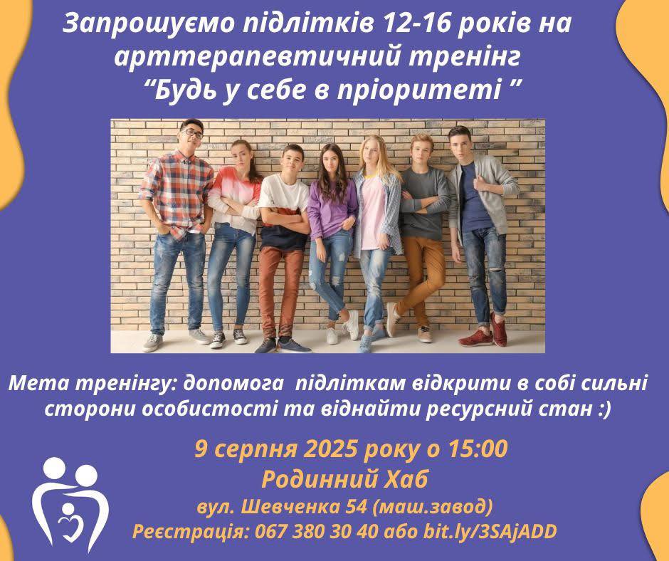Протягом 7–9 серпня 2025 року у Родинному Хабі Звягеля відбудеться низка подій для підлітків віком 12–16 років. Це чудова можливість для молоді провести літні дні цікаво, пізнавально та з користю для власного розвитку.