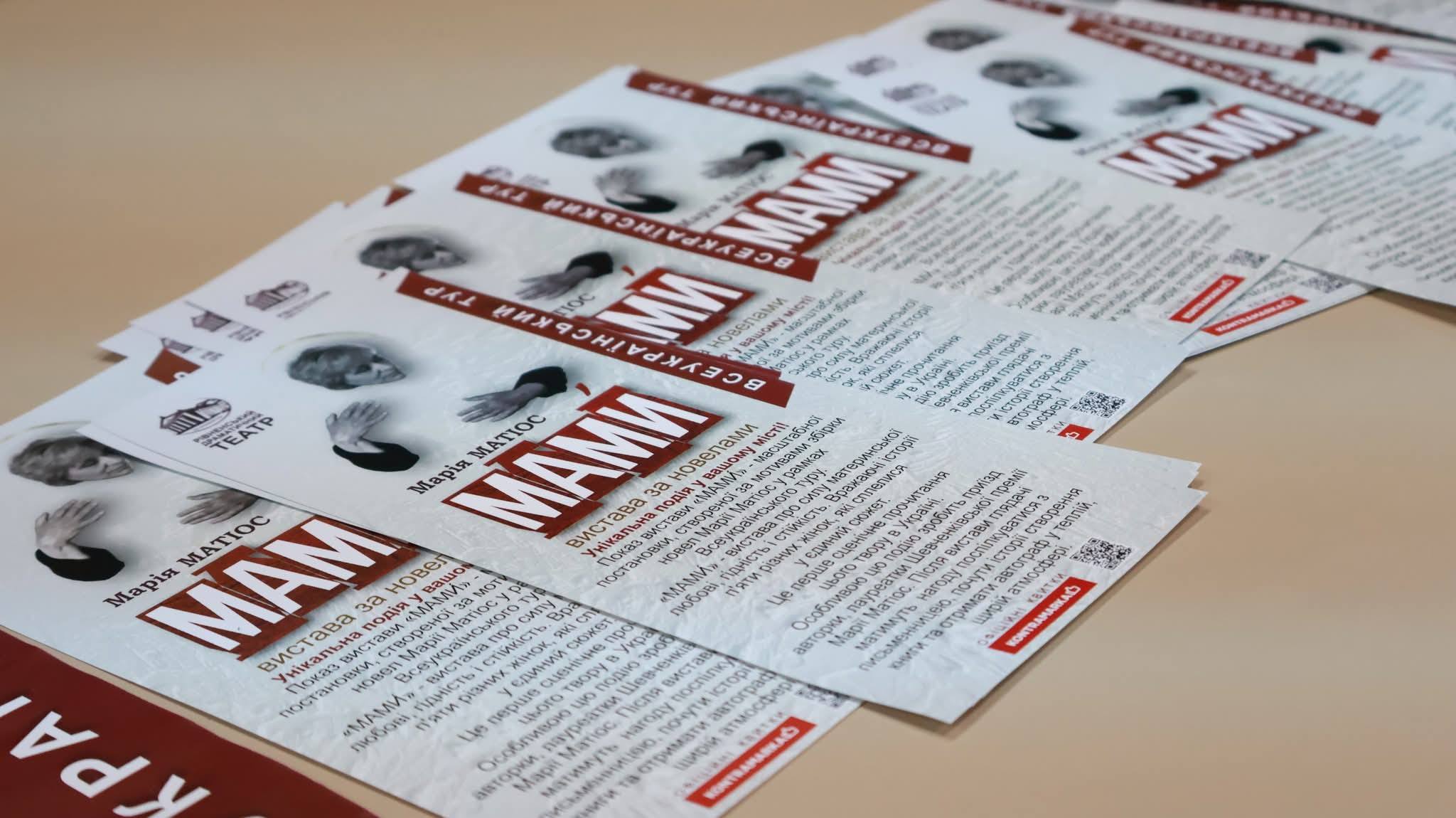 Учора в Житомирі відбулася прем’єра вистави «МАМИ́» у виконанні Рівненського театру. Постановка створена за мотивами щемливої збірки новел Марії Матіос, написаних із великим співчуттям і розумінням болю тих, хто втратив найдорожче.