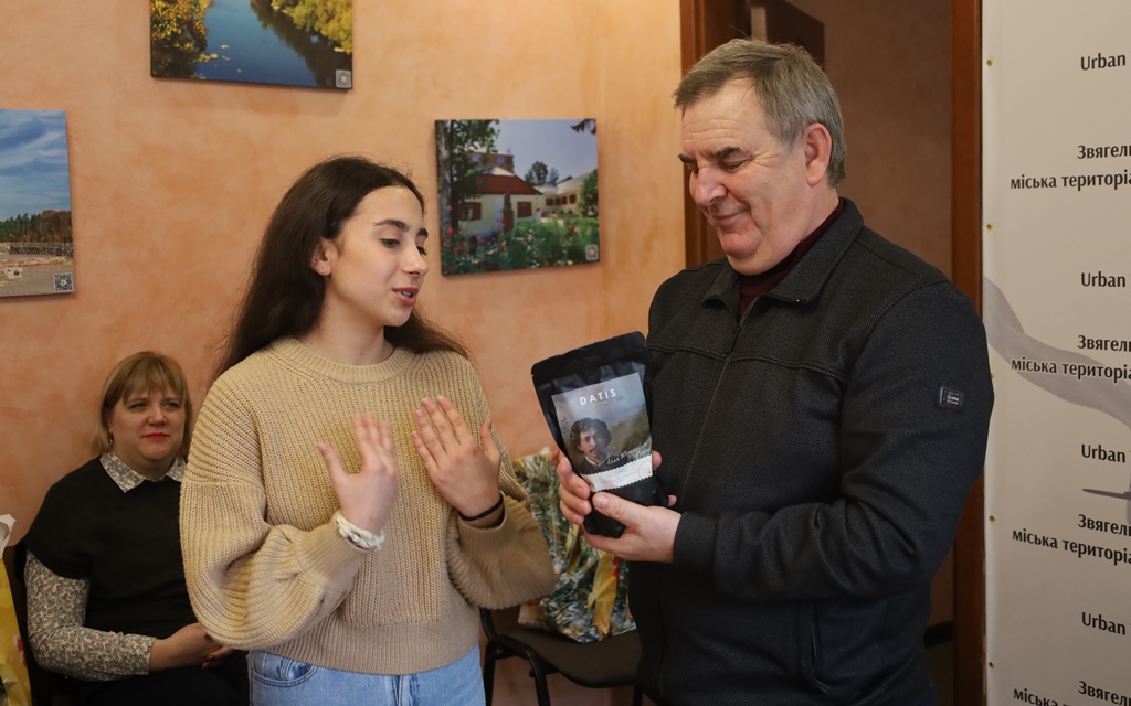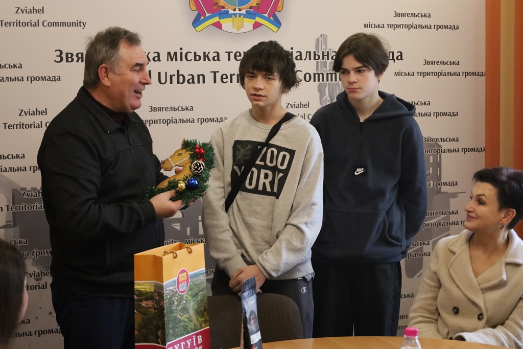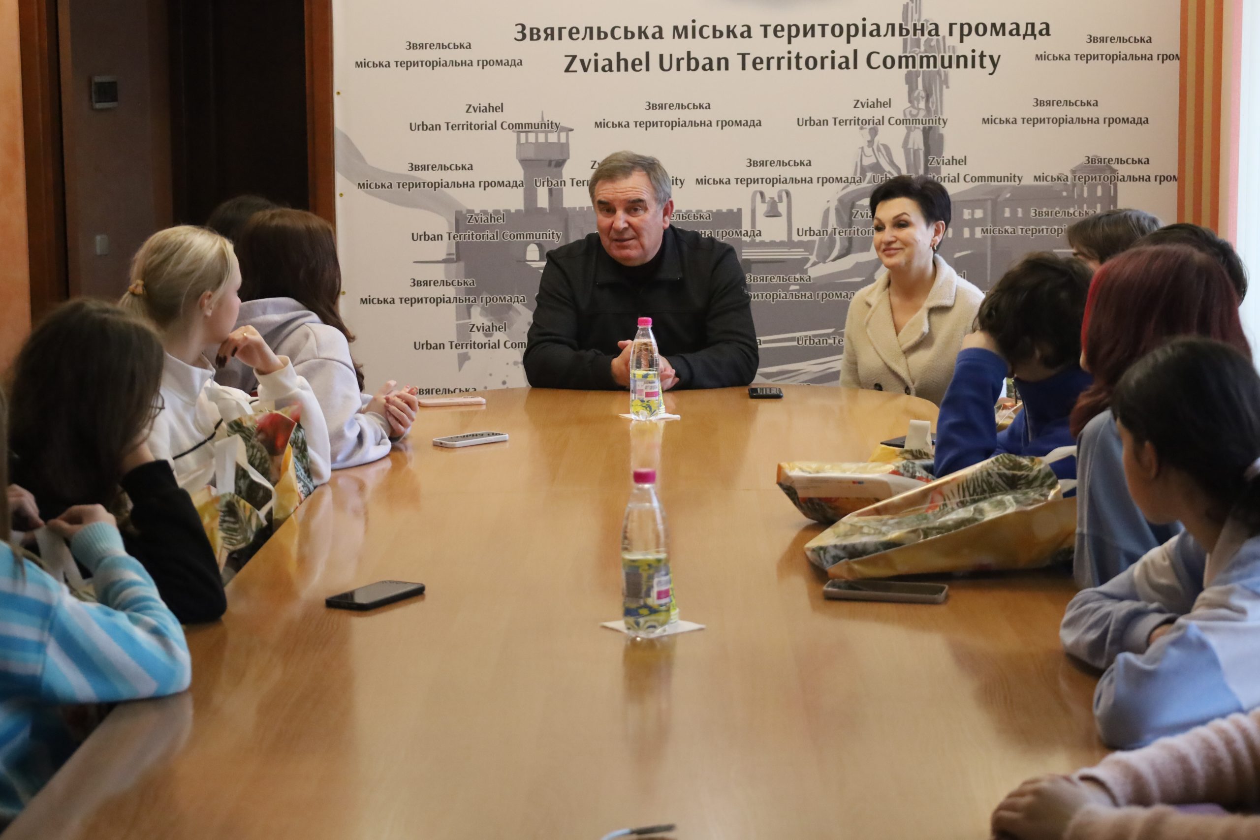 Діти поділилися своїми позитивними враженнями від перебування у Звягелі, розповіли про нові знайомства, цікаві події та теплий прийом. На згадку про зустріч вони подарували міському голові символічні презенти зі своєї малої батьківщини.