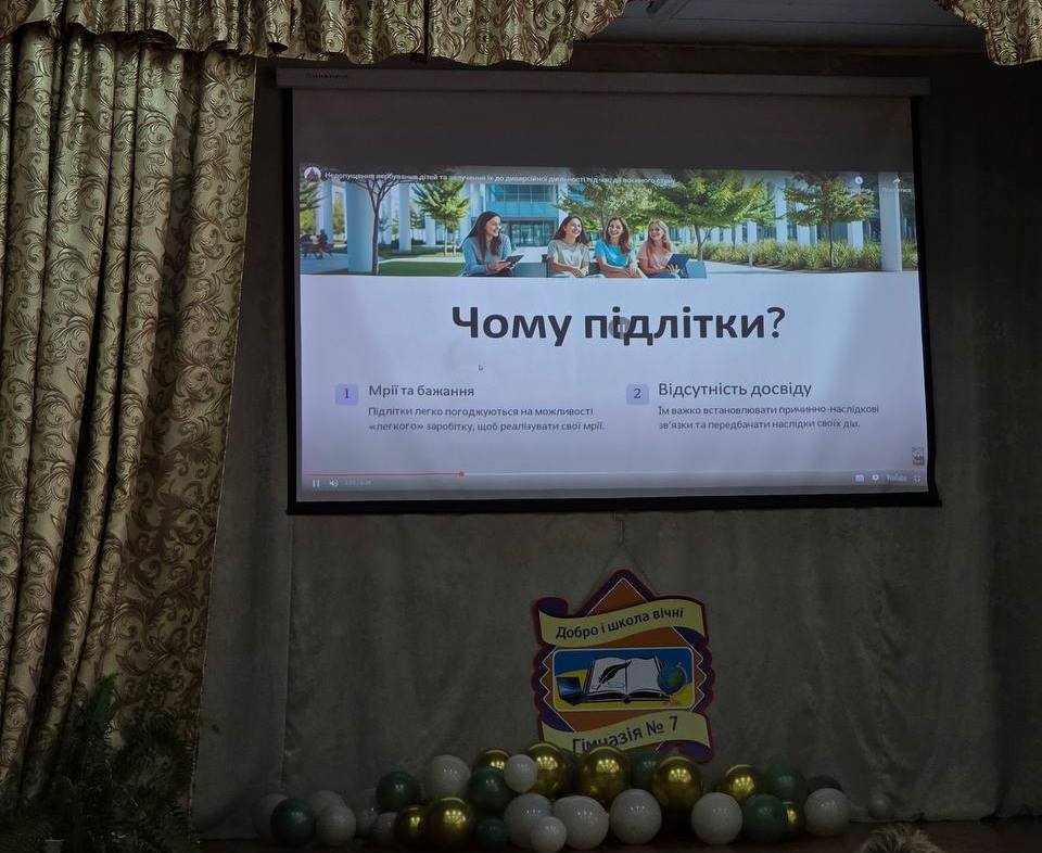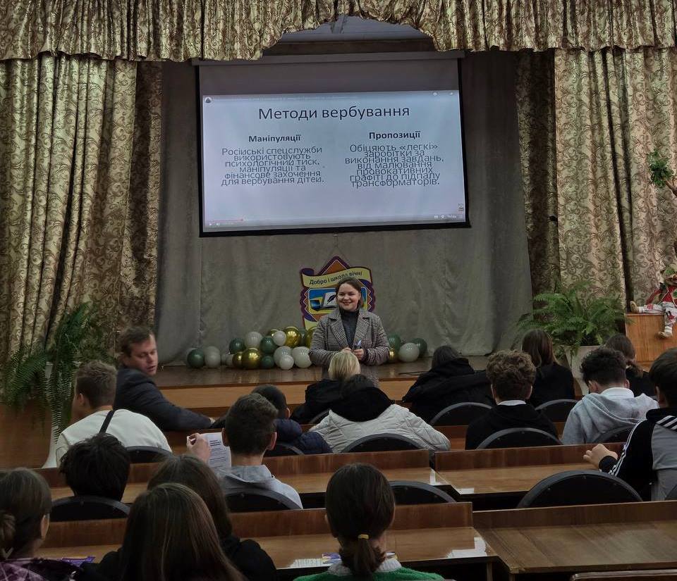 Разом з школярами визначили поняття вербування; методи вчинення вербування агентами ворожої держави; визначили кваліфікацію протиправного діяння, до якого воно призводить; поговорили про диверсії та їх наслідки; зʼясували кримінальну відповідальність за такий злочин.