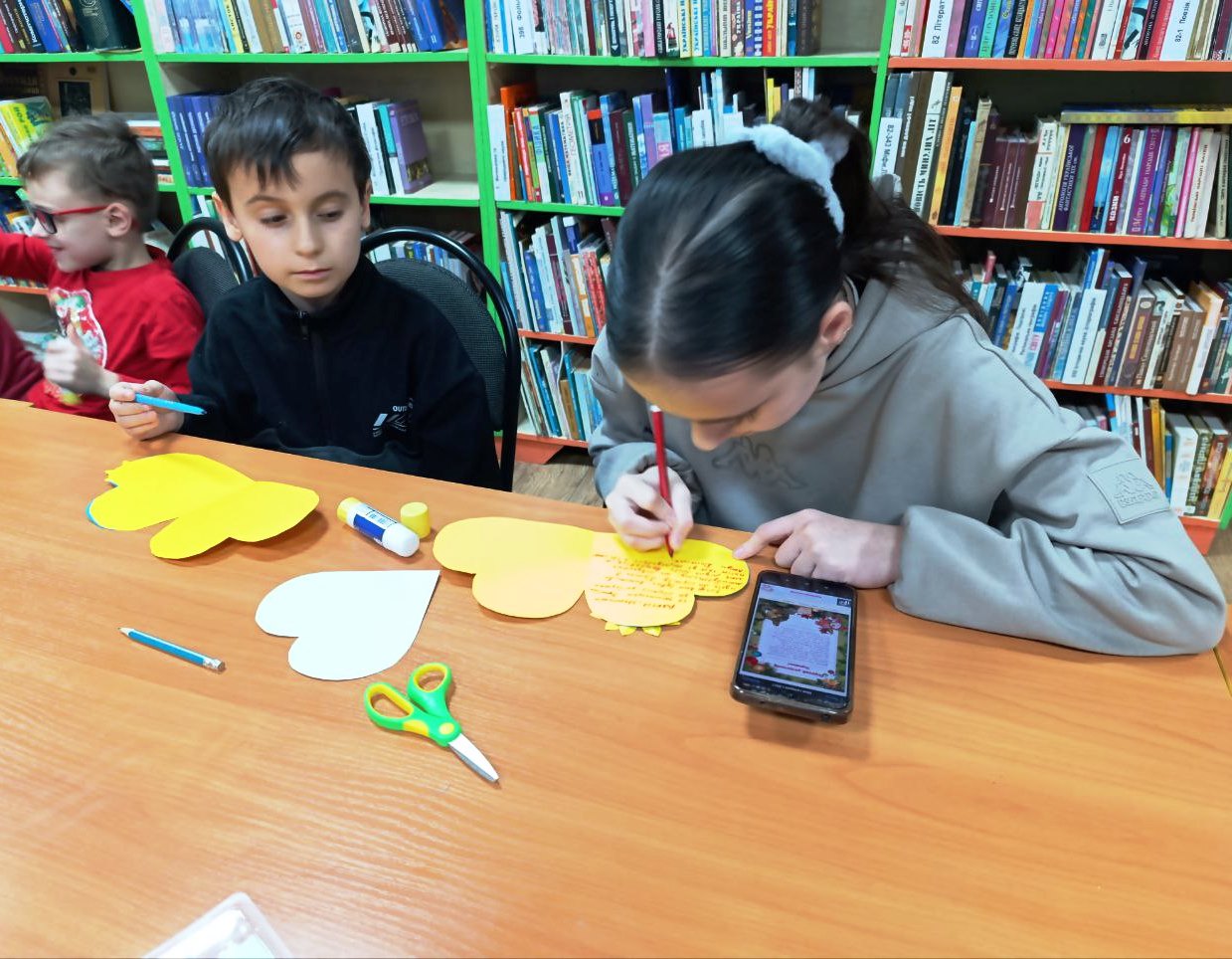 У Дитячому бібліопросторі ім. Олени Пчілки панувала тепла й святкова атмосфера. Юні читачі створювали власноруч патріотичні листівки «Зі святом, захисники!». Діти з натхненням малювали, вирізали й клеїли, вкладаючи у свої роботи найщиріші слова подяки та підтримки для воїнів. Кожна листівка стала маленьким символом віри, добра та побажань миру.