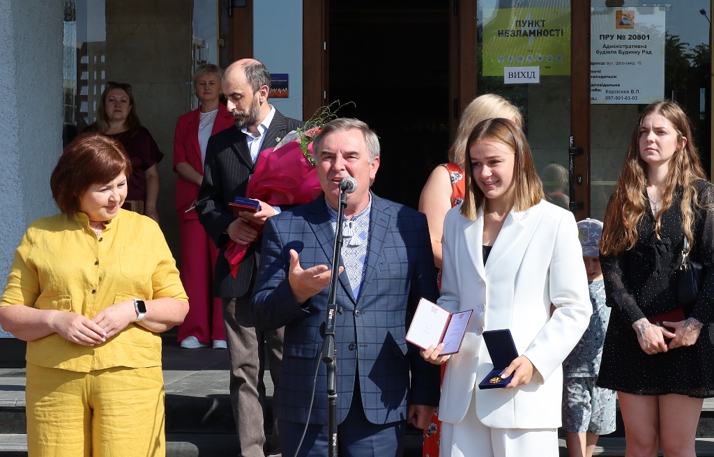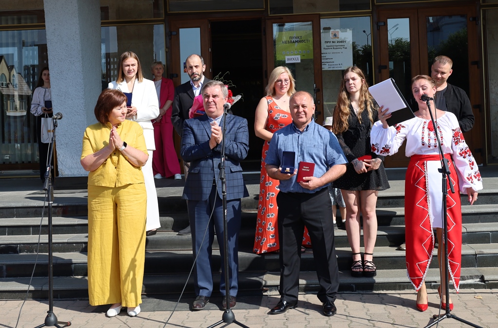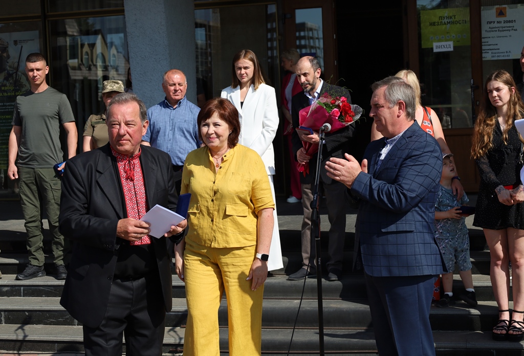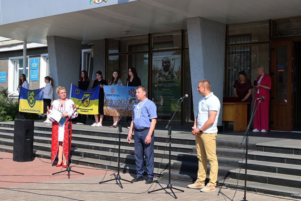 У межах урочистостей до Дня міста Звягель до вітального слова та церемонії вручення районних нагород долучилися начальник Звягельської районної військової адміністрації Іван Туровський та голова районної ради Артур Загривий.