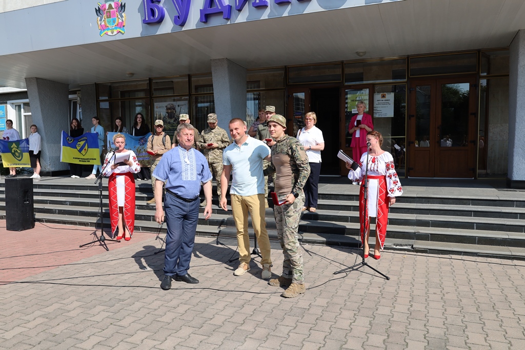 💙💛 У своїй промові міський голова Микола Боровець підкреслив, що кожна перемога громади, кожне досягнення — це частина великої історії Звягеля, яка твориться разом: військовими, діячами культури, освіти, науки, спорту.