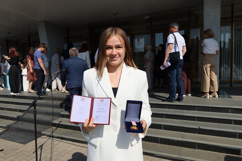 16 червня 2025 року, у день, коли Звягель відзначає свою історичну відновлену назву та гідну багатовікову спадщину, на території Будинку Рад відбулася урочиста церемонія підняття прапора міста та вручення відзнак Звягельської громади — ордена «Звягель» та звання «Почесний громадянин Звягеля».