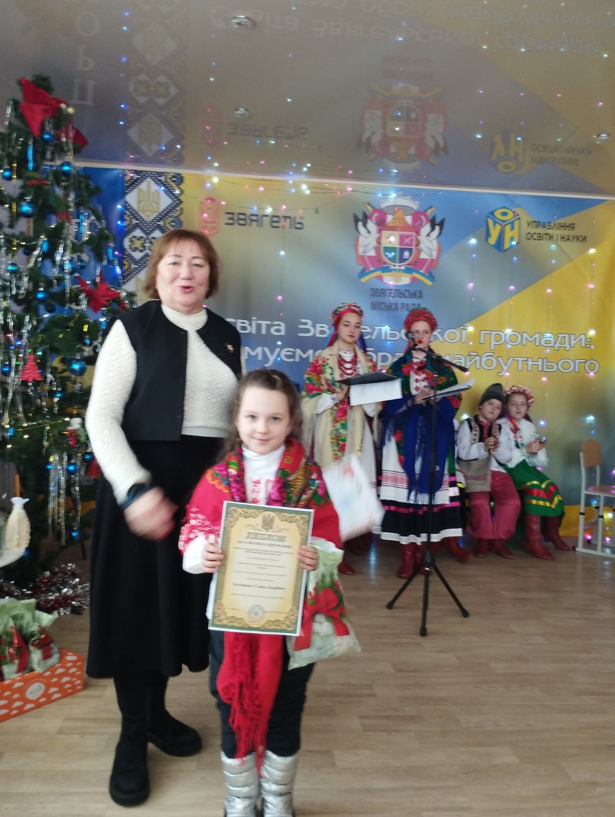Особливо магічно прозвучала прадавня колядка про Йордань-водицю у виконанні Єлизавети Іщук. Щиро вітали різдвяно-новорічними віншуваннями наймолодша вихованка гуртка «ABC & Club» Уляна Антоненко (керівник — М. Багатчук) та вихованці лінгвістичного гуртка (керівник — І. Гольцман).