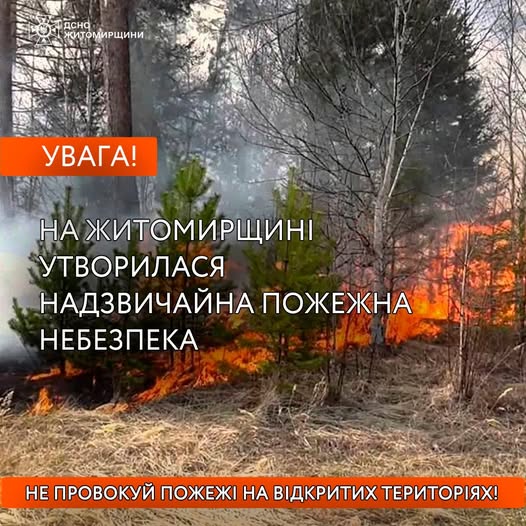 У найближчі кілька днів на Житомирщині буде утримуватись надзвичайна пожежна небезпека