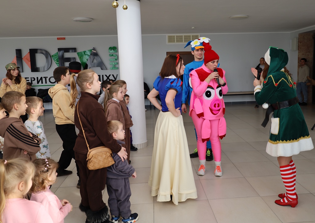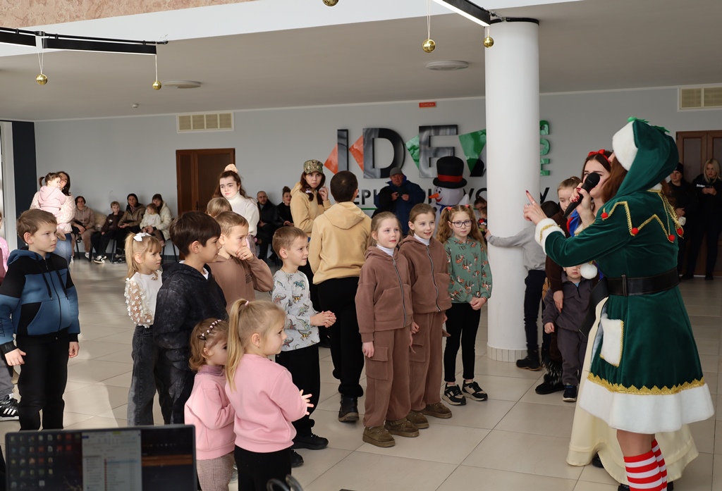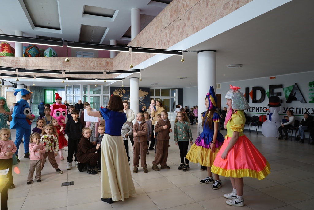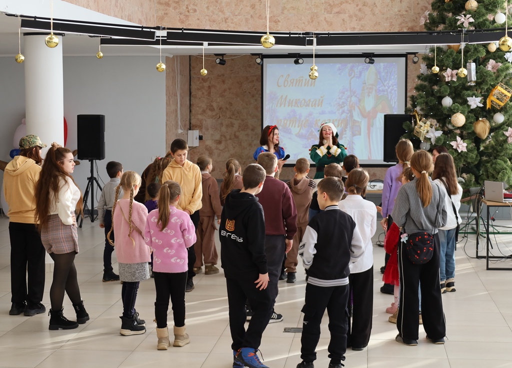 Діти вирушили в захопливу подорож до чарівного світу, де Святий Миколай разом із добрими героями рятує казку від темряви. Актори та аніматори подарували не лише яскраву гру-виставу, а й можливість дітям стати повноправними учасниками пригоди: допомагати героям, виконувати завдання та здобувати власні маленькі перемоги. У залі панували радість, сміх і щирі посмішки.