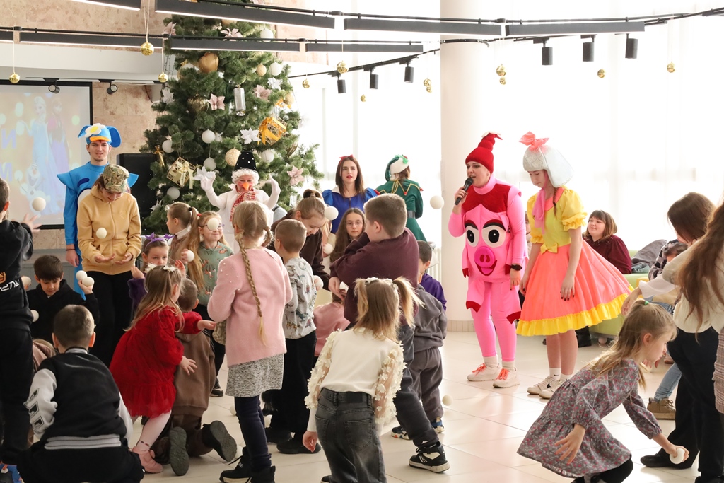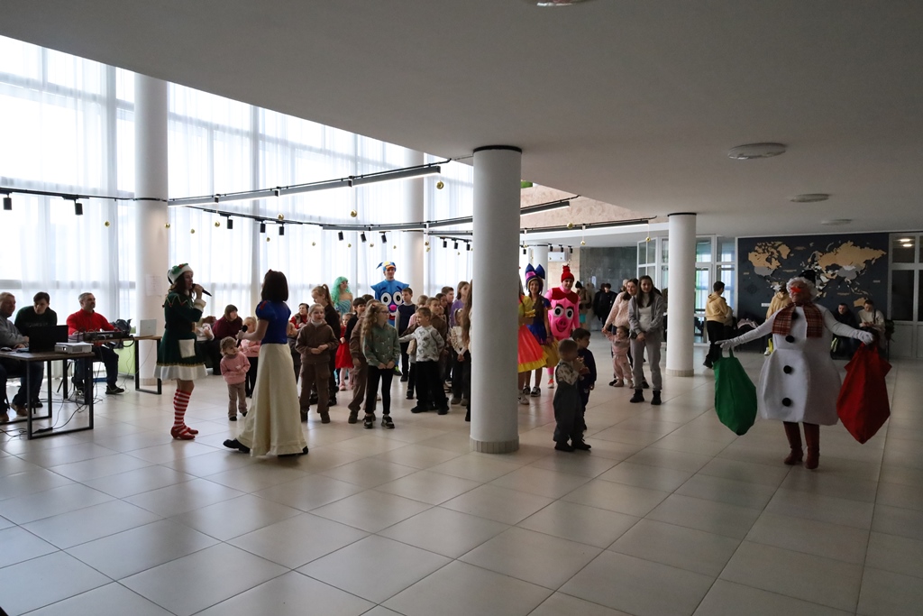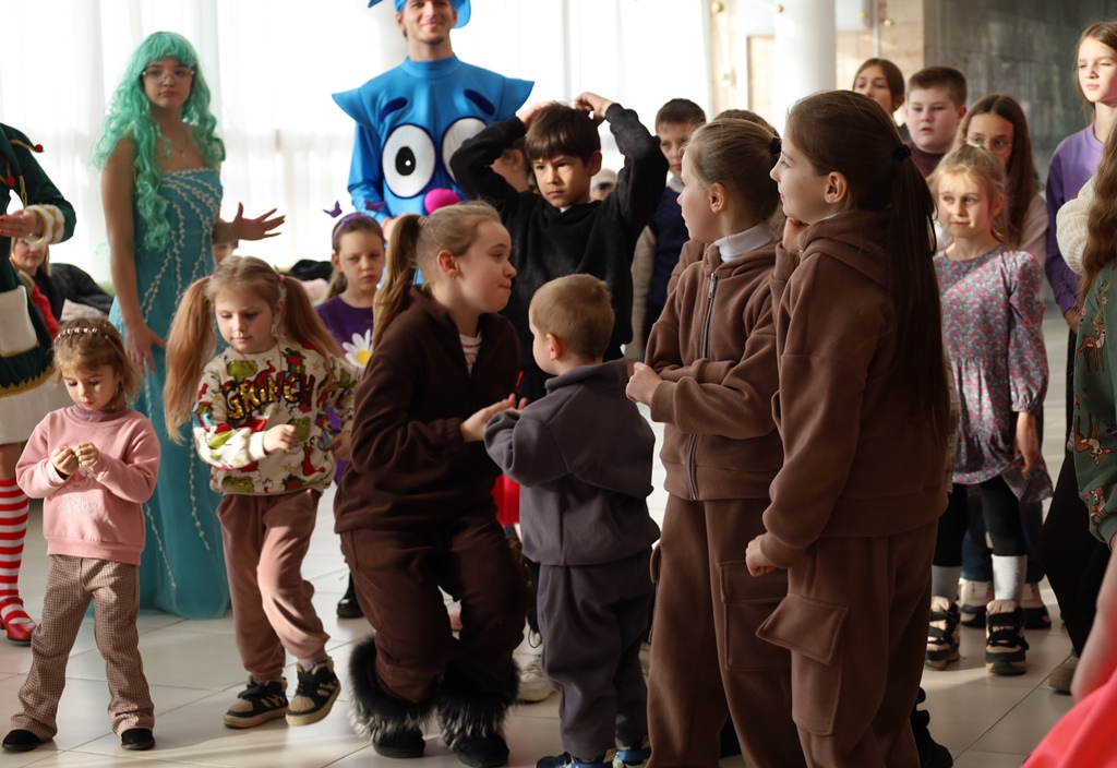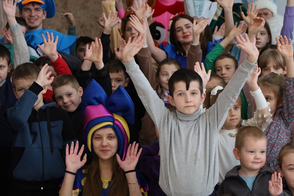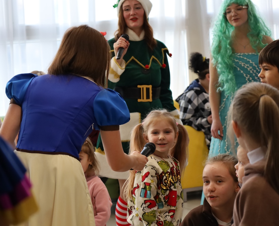 Діти вирушили в захопливу подорож до чарівного світу, де Святий Миколай разом із добрими героями рятує казку від темряви. Актори та аніматори подарували не лише яскраву гру-виставу, а й можливість дітям стати повноправними учасниками пригоди: допомагати героям, виконувати завдання та здобувати власні маленькі перемоги. У залі панували радість, сміх і щирі посмішки.
