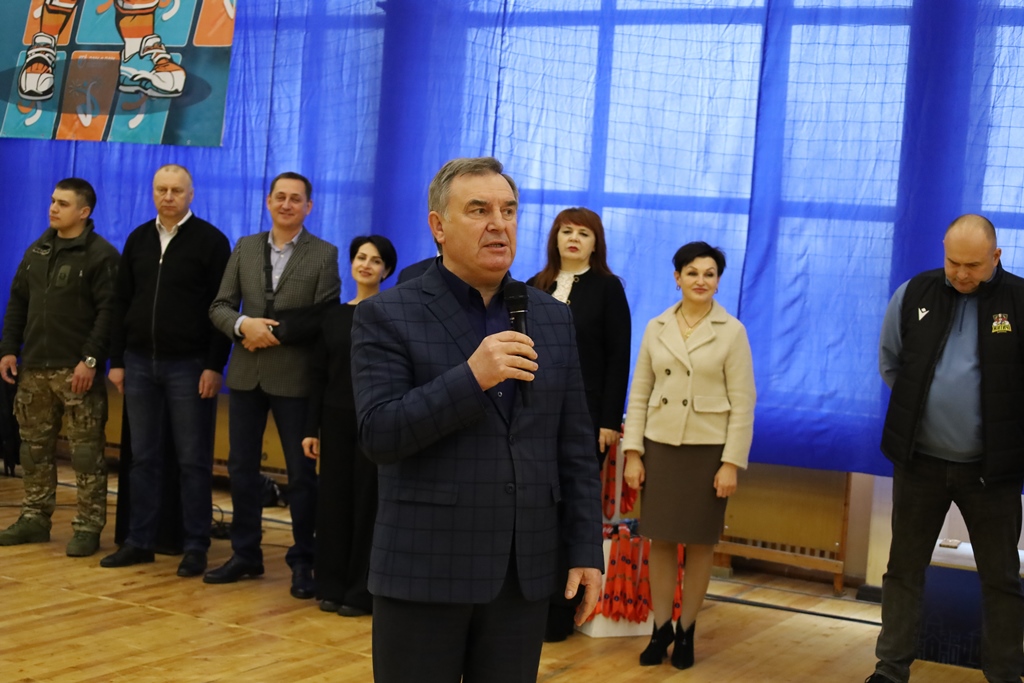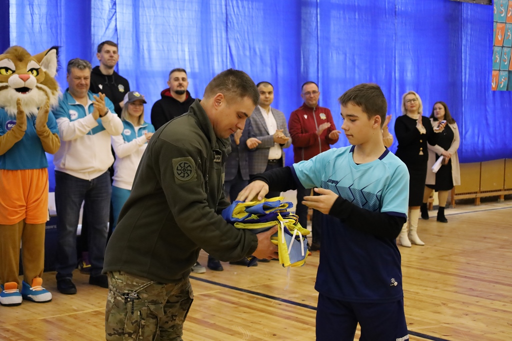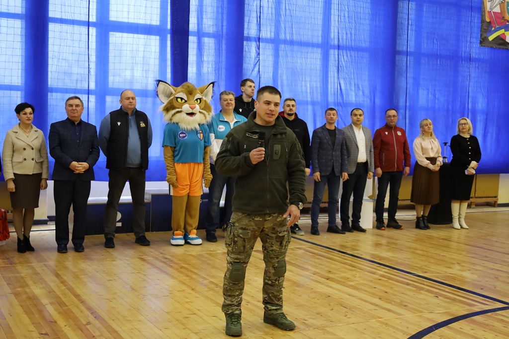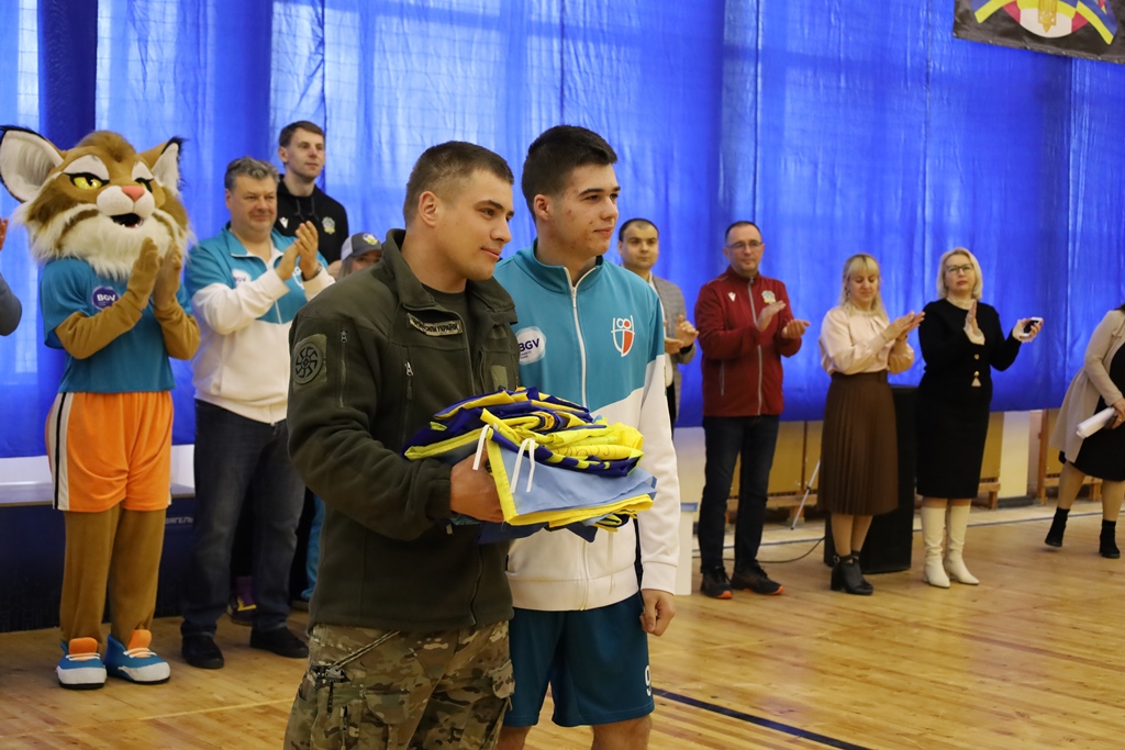 Особливим моментом урочистого відкриття заходу було звернення до присутніх захисника України, Артема Кліндуха, солдата 30-ї окремої механізованої бригади ім. Костянтина Острозького, який після поранення у Куп’янську перебуває на реабілітації у місті Звягель. Військовий, хвилюючись, наголосив на тому, що там, на фронті, військові стоять, борються заради того, щоб діти, молодь мали можливість розвиватися, займаючись спортом, дбаючи про здорове майбутнє країни. Символічний подарунок – прапори України, підписані учасниками усіх команд, вручили Артему, щоб він передав їх побратимам з побажаннями якнайшвидшого миру і спокою у нашій країні, якнайшвидшого повернення захисників до своїх домівок, до своїх рідних.
