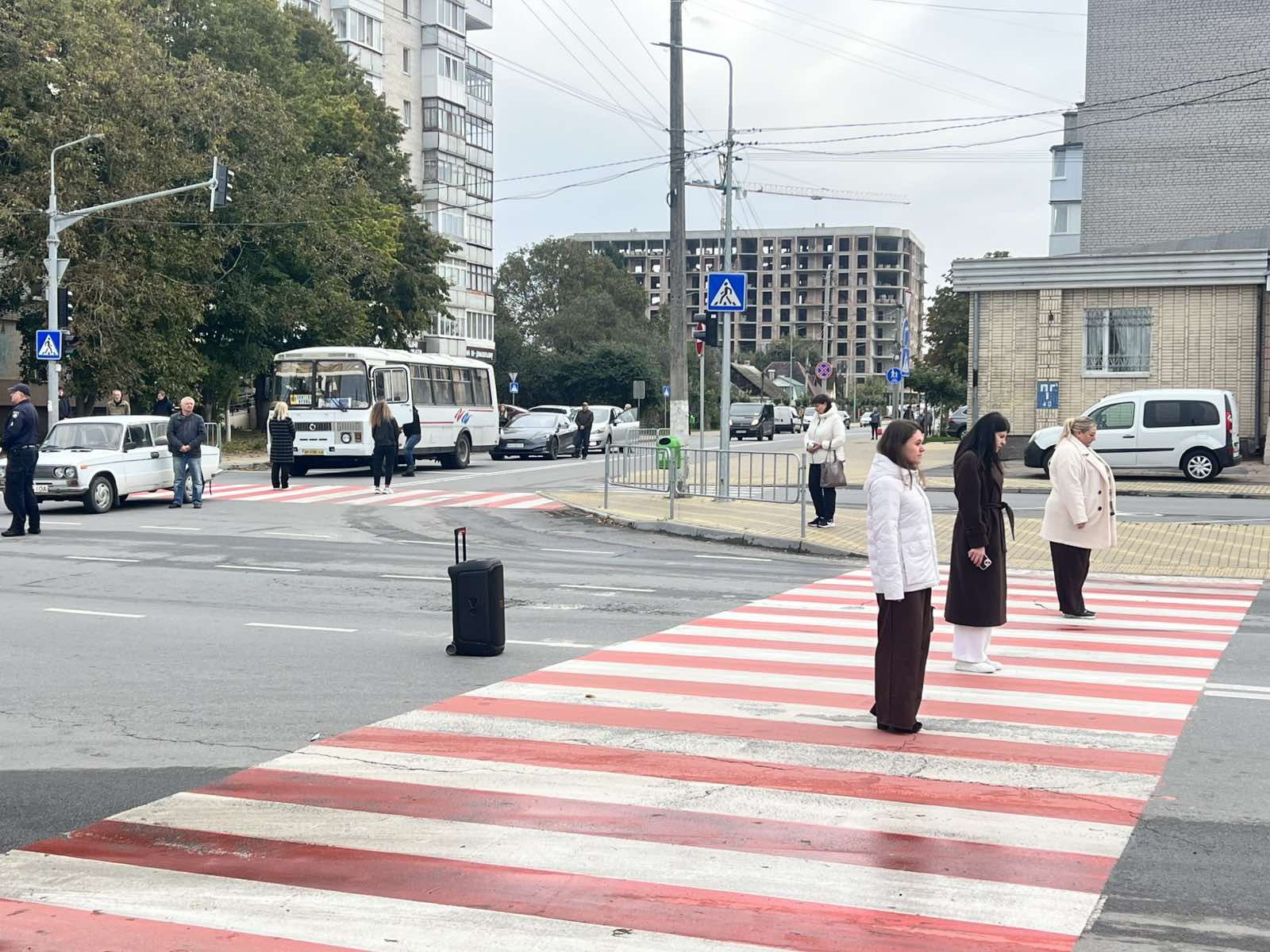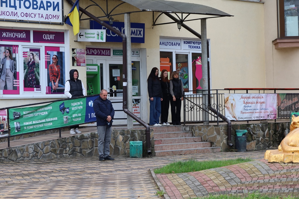 На одну хвилину призупинився рух громадського транспорту, робота в установах, закладах, на підприємствах та в організаціях. Патрульна поліція перекрила рух на головних перехрестях міста.