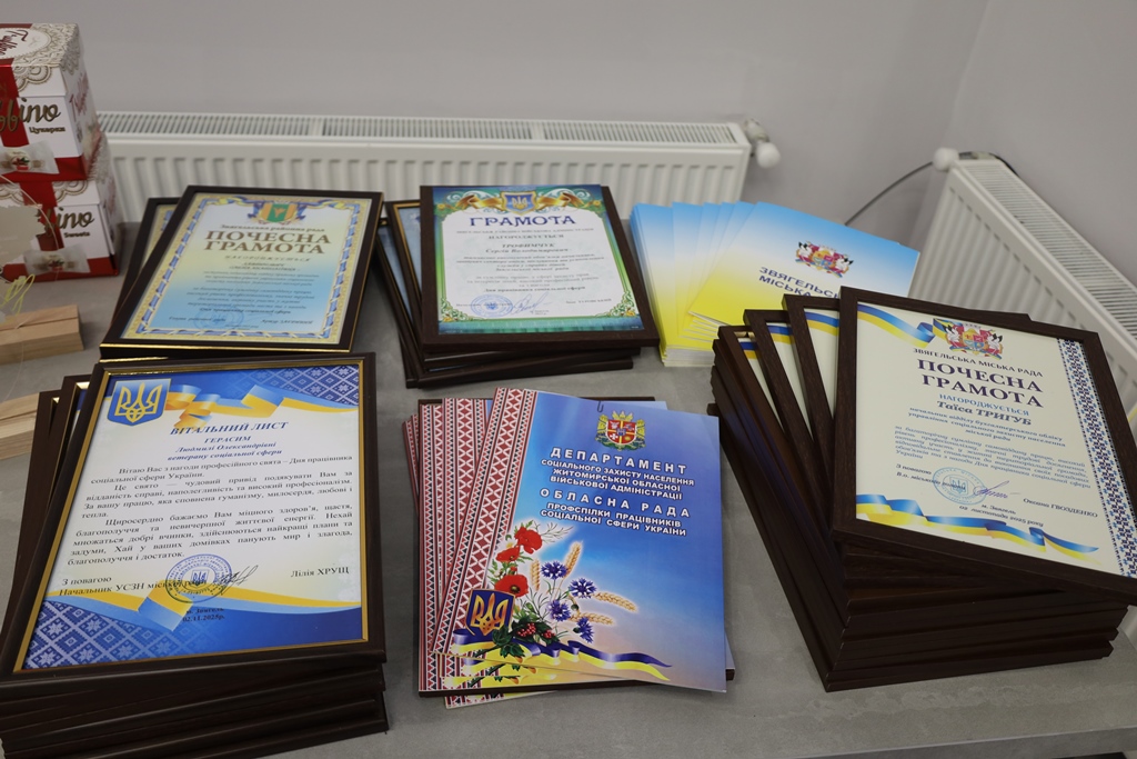 Почесними грамотами Департаменту соціального захисту населення Житомирської обласної державної адміністрації та обласної ради профспілки працівників соціальної сфери України відзначено: