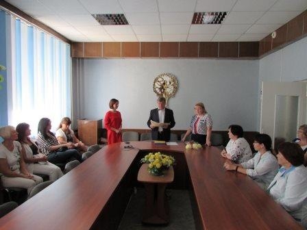 Начальник відділу з питань охорони здоров’я та медичного забезпечення міської ради Любомир Дутчак вручив привітальний лист від імені міського голови Віктора Весельського завідувачці Підприємством Новоград-Волинська центральна міськрайонна аптека №217 Анні Ганношиній.