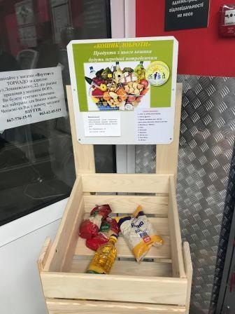 Просимо всіх бажаючих долучитись до акції придбавши продукти харчування в магазинах та поклавши їх до «Кошика доброти».