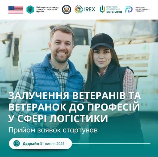 Програма реінтеграції ветеранів IREX підтримала проєкт для ветеранів та ветеранок — безплатне навчання та працевлаштування у сфері перевезень і логістики.