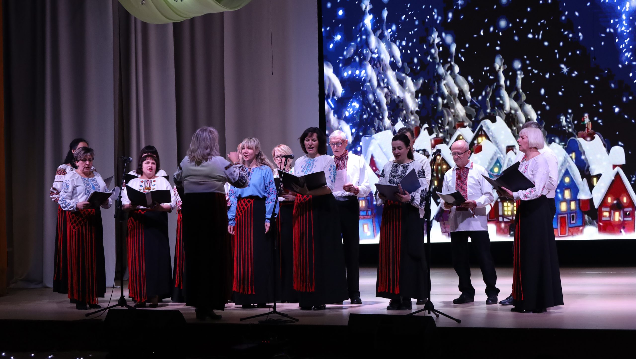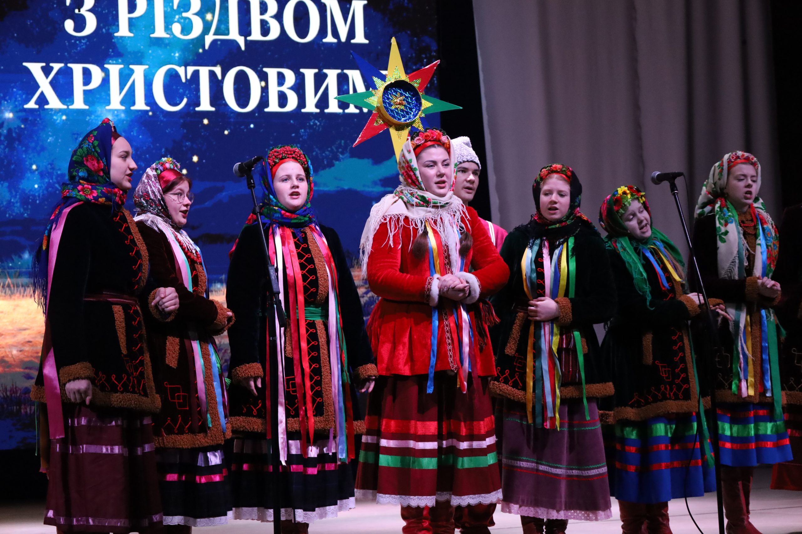 Святкову атмосферу створили різдвяні колядки у виконанні зразкового фольклорного ансамблю «Ордана», які щиро вітали гостей концерту.