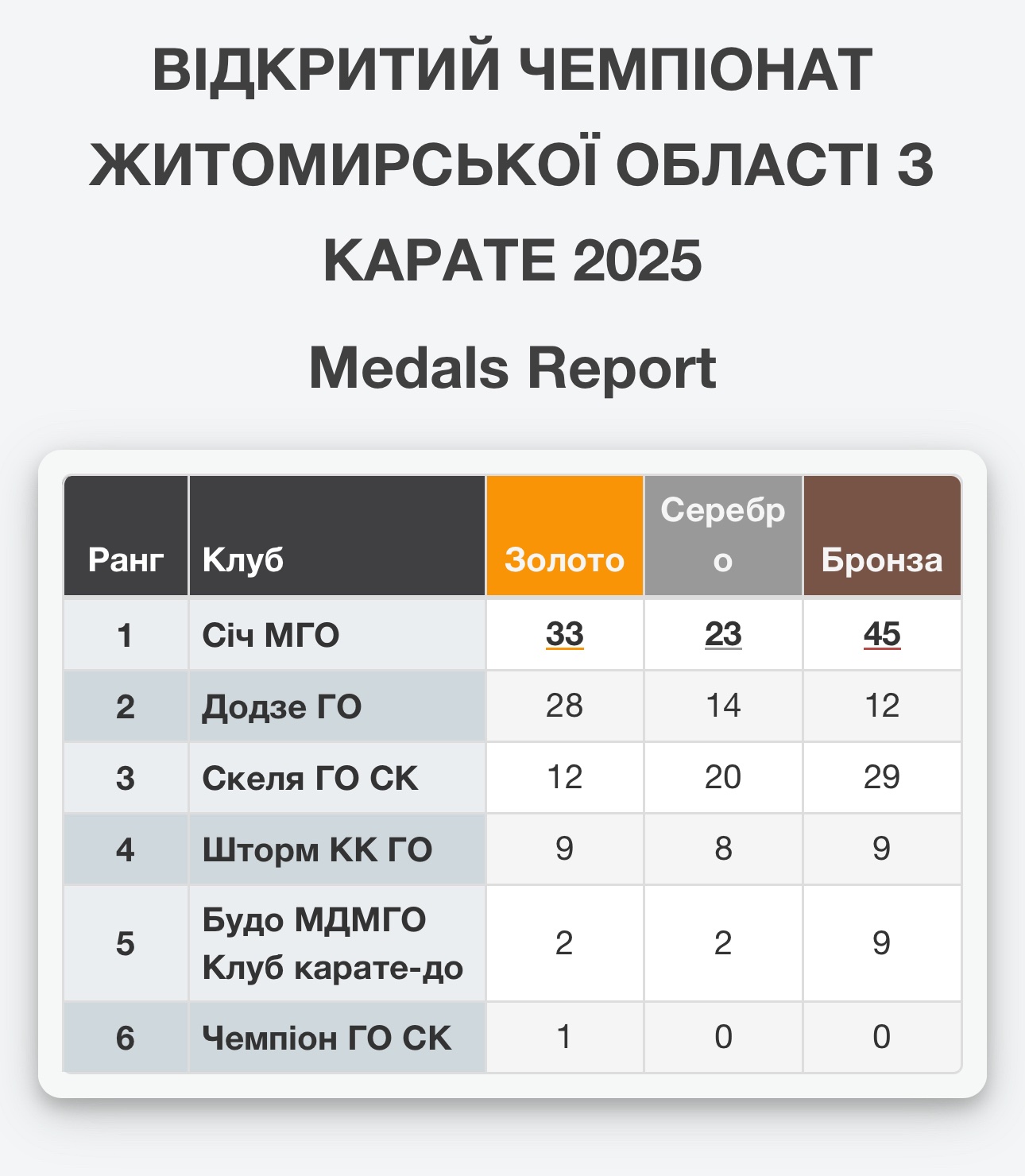 Змагання пройшли у напруженій, динамічній та безкомпромісній боротьбі, що вкотре підтвердило зростання рівня підготовки спортсменів та популярності карате в Житомирській області.
