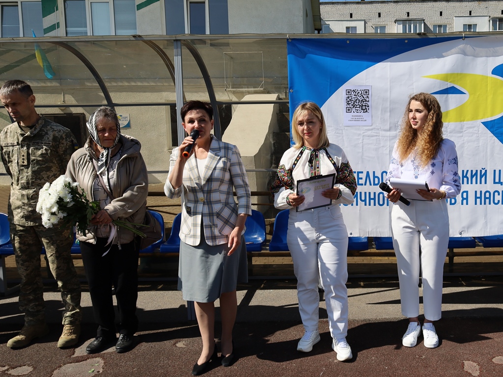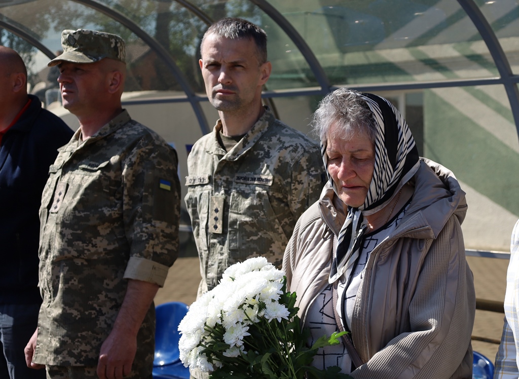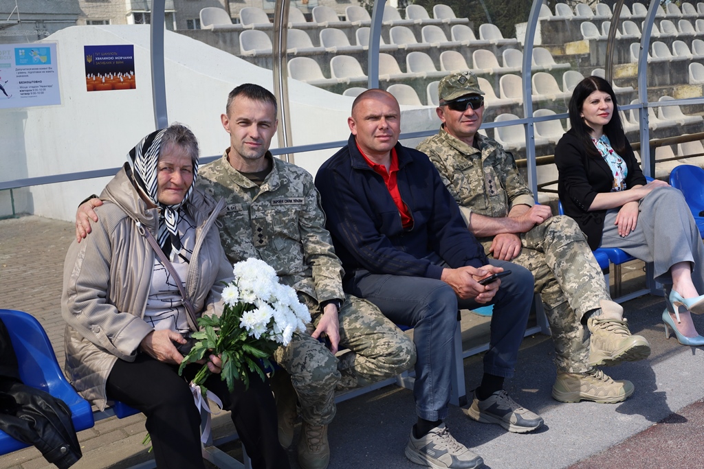 Особливо зворушливою стала мить, коли до мікрофона вийшла мати Максима — Катерина Степанівна. Їй вручили квіти як символ вдячності й пошани. Її слова — наповнені болем, гордістю та вірою — торкнулися кожного, хто був присутній на стадіоні.