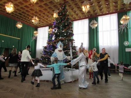 Малеча вбрана у гарні новорічні костюми залюбки брала безпосередню участь у святковому новорічному дійстві. Дітлахи разом зі своїми батьками співали, танцювали та водили хороводи навколо новорічної ялинки.
