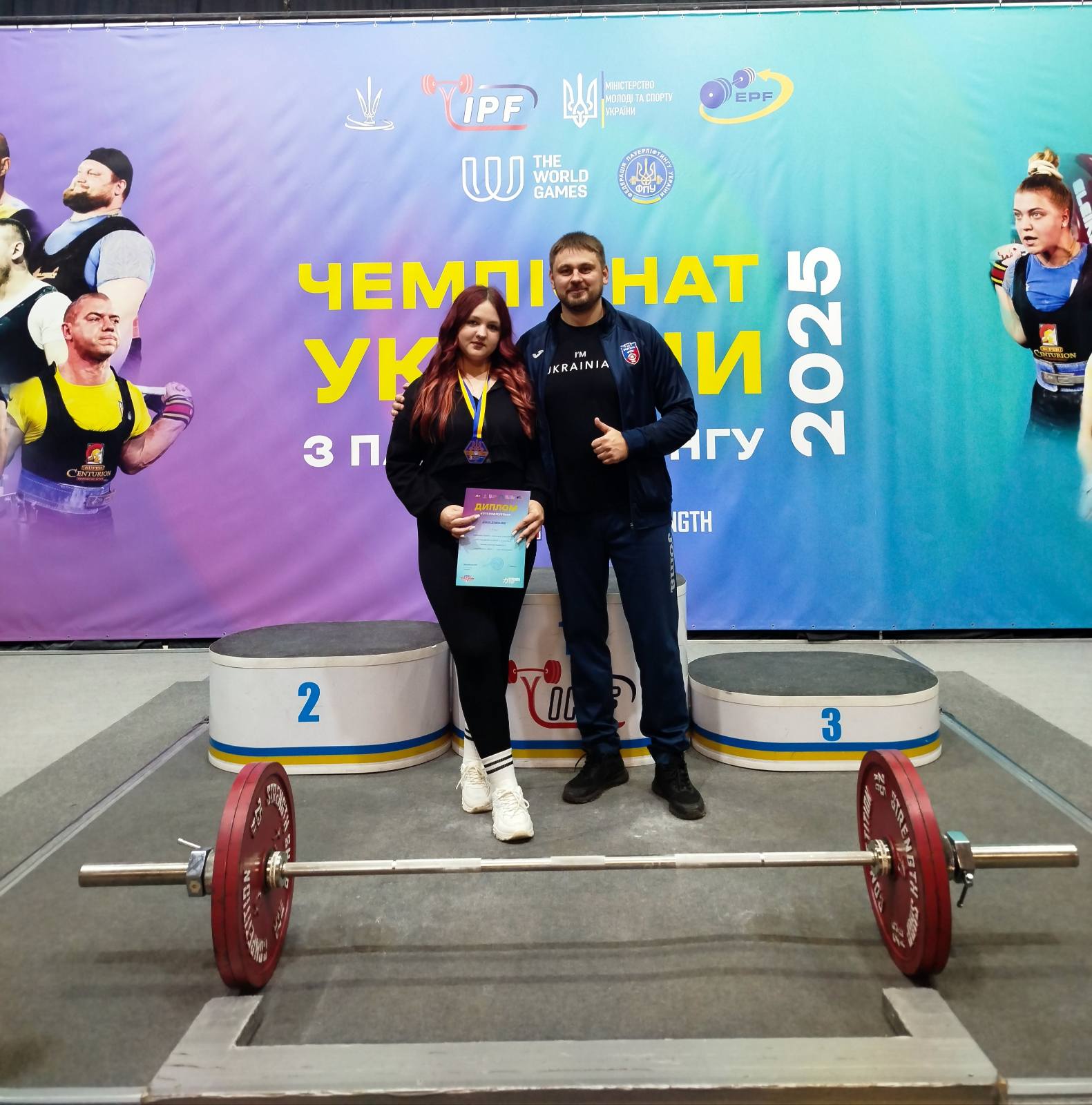 Діана Довгалюк (студентка Звягельського політехнічного фахового коледжу) — ІІІ місце серед дівчат у категорії понад 84 кг із сумою 252,5 кг.