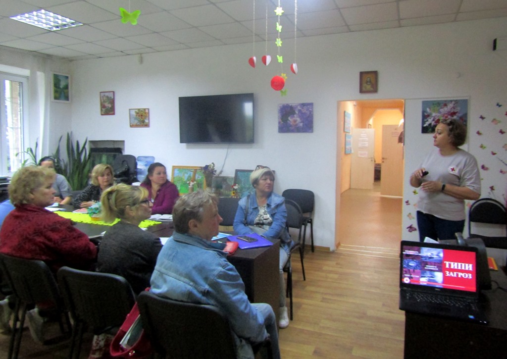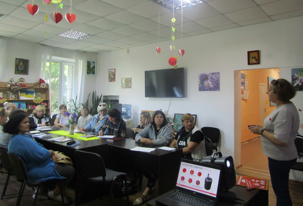 Фахівець з мінної небезпеки Звягельської міжрайонної організації Червоного Хреста Олена Карповець провела для соціальних робітників відділення соціальної допомоги вдома територіального центру навчання на тему: «Інформування про ризики небезпеки вибухонебезпечних предметів та навчання з попередження ризиків».