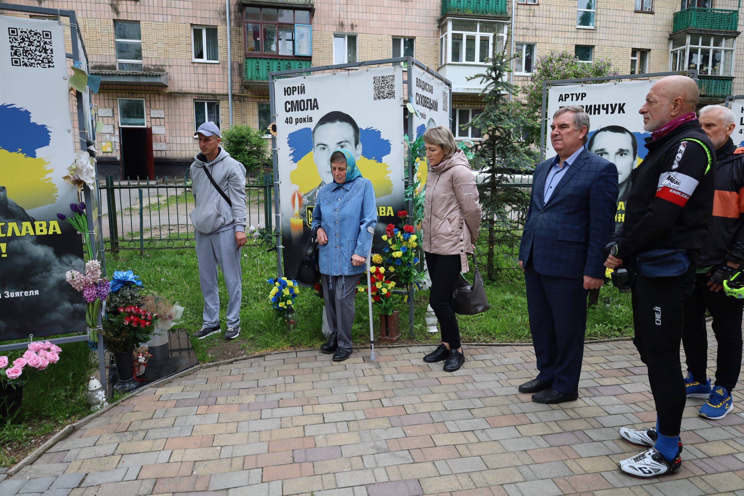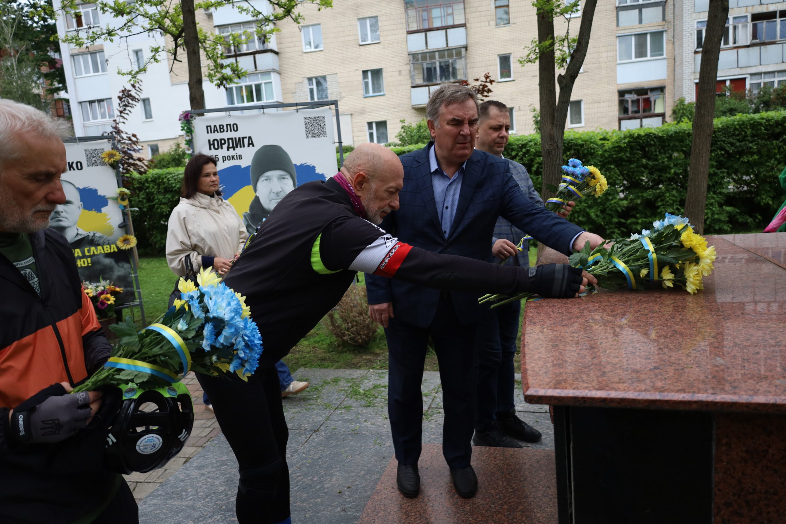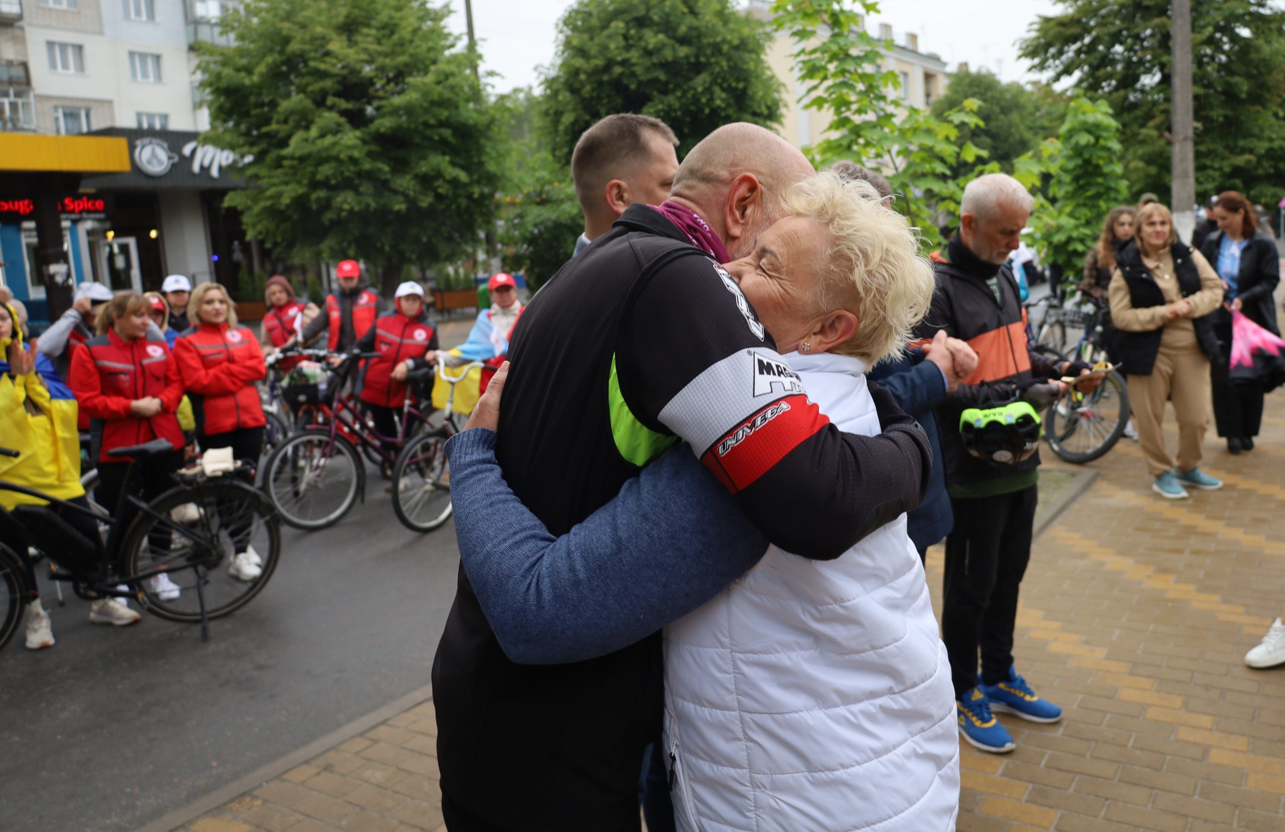 У Звягелі учасників велопробігу урочисто зустрічали біля Алеї Героїв. Серед присутніх — міський голова Микола Боровець, перший заступник начальника Звягельської районної військової адміністрації Юрій Оханський, ветерани та ветеранки війни, родини загиблих Захисників і Захисниць, представники громадськості та місцеві велосипедисти.