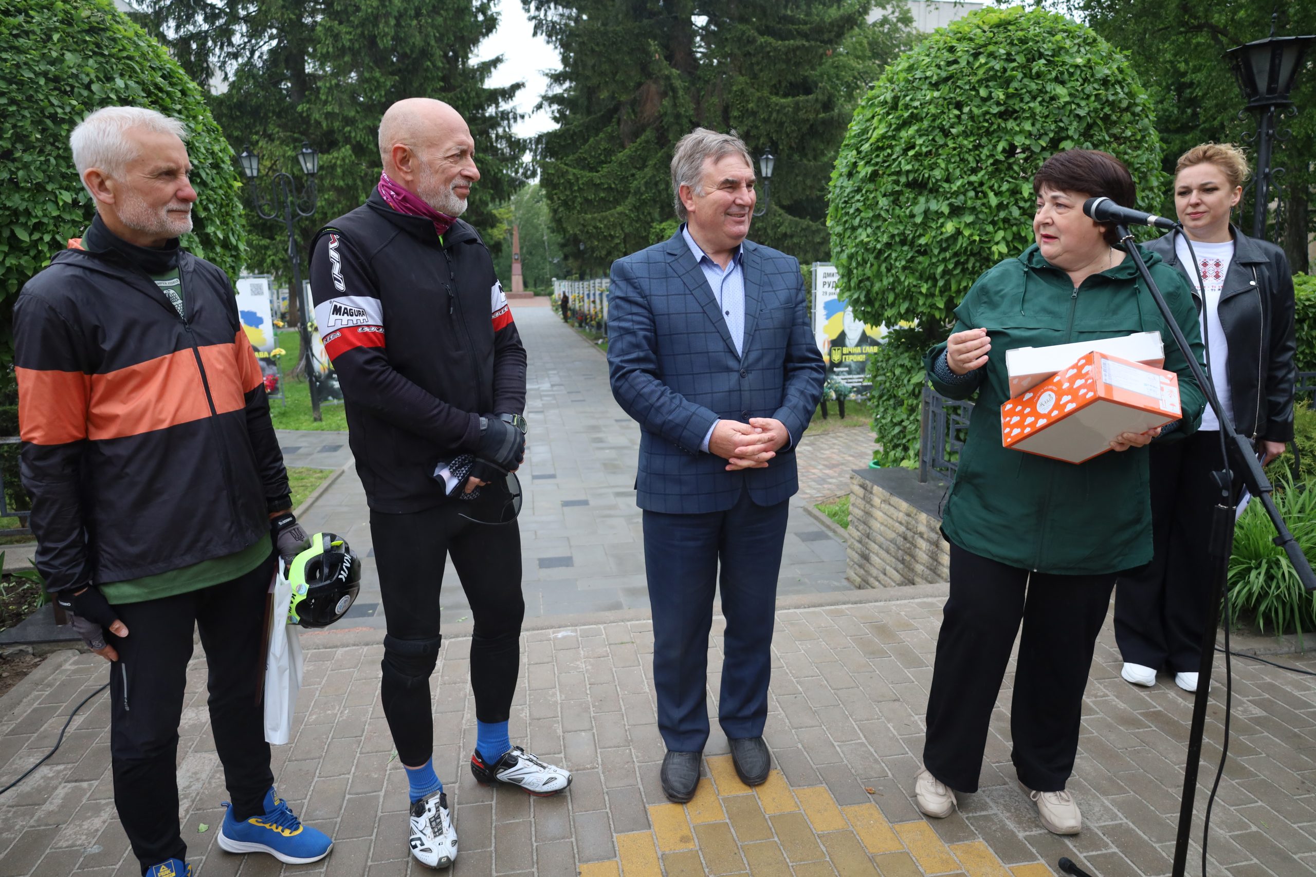 До вітального слова був запрошений міський голова Микола Боровець, який подякував учасникам за їхню стійкість, мужність і вірність ідеалам свободи. У рамках заходу відбулося вручення подяк учасникам велопробігу та сувенірної продукції на знак вдячності за участь у важливій місії.